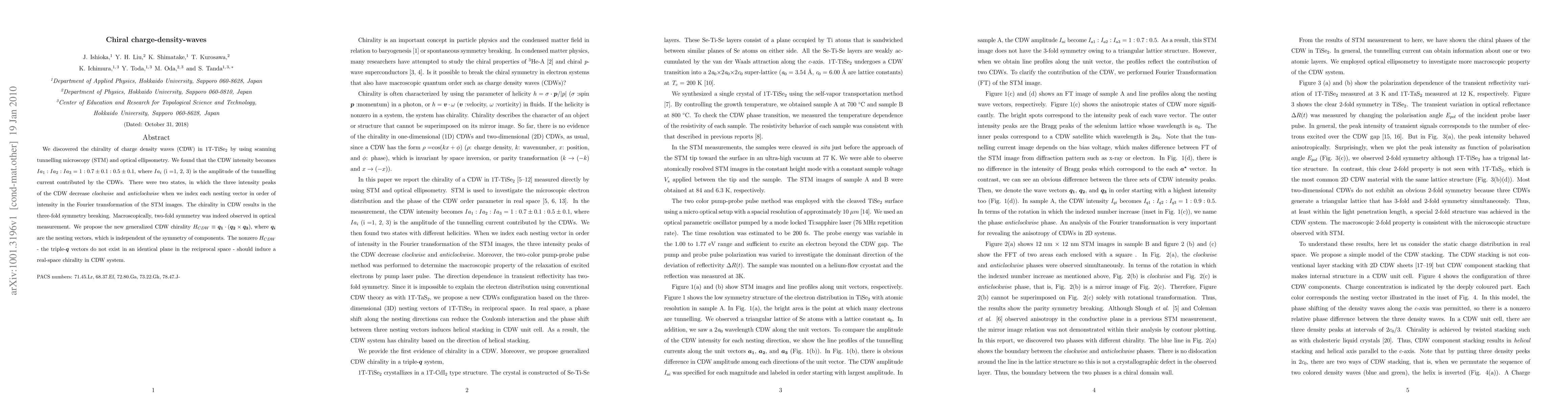 Researchers used STM and optical ellipsometry to discover chirality in charge density waves (CDW) in 1T-TiSe2, revealing a three-fold symmetry breaking with a new generalized CDW chirality measure.