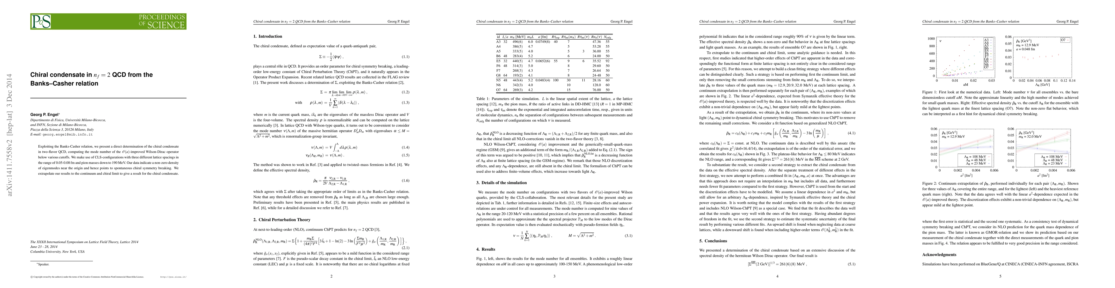 Researchers used the Banks-Casher relation to study chiral condensate in nf=2 QCD, finding evidence of spontaneous symmetry breaking and extrapolating results to the continuum limit.