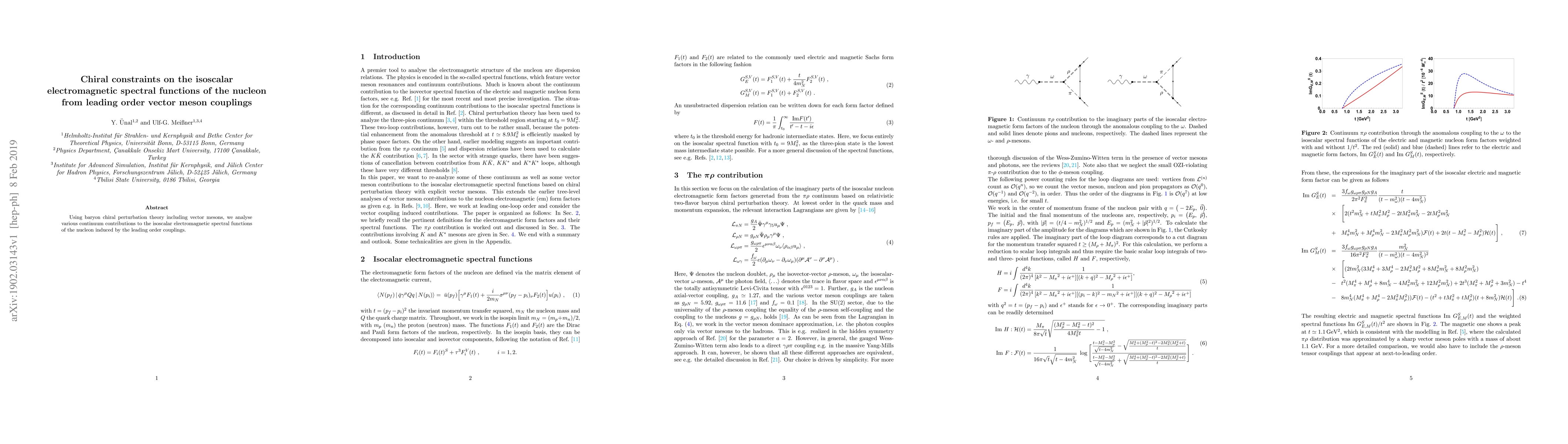 Using baryon chiral perturbation theory including vector mesons, we analyse various continuum contributions to the isoscalar electromagnetic spectral functions of the nucleon induced by the leading order couplings.
