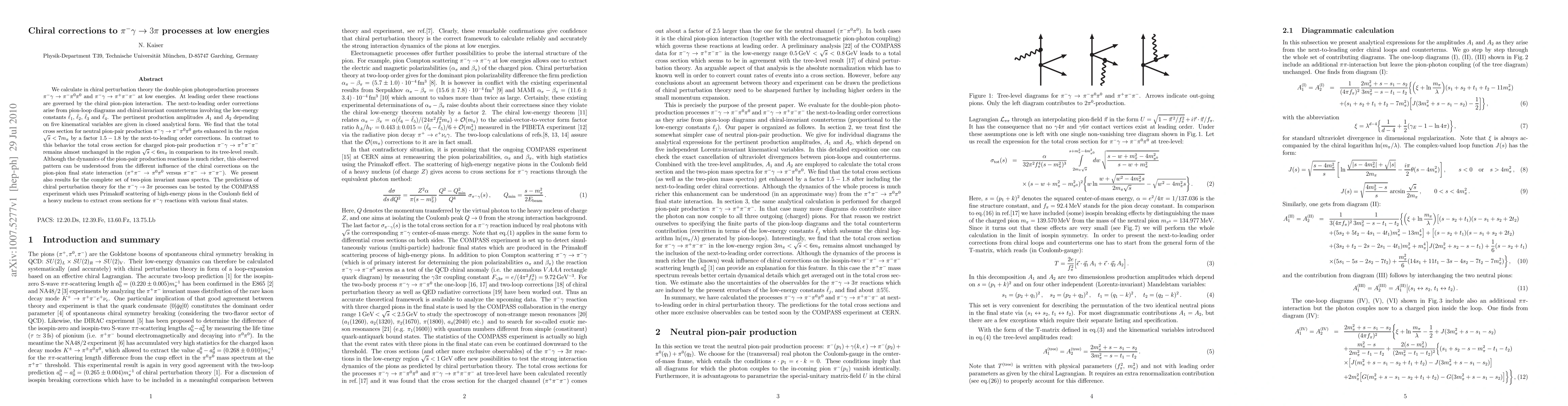 This paper calculates chiral corrections in low-energy double-pion photoproduction processes $\pi^-\gamma\to \pi^- \pi^0\pi^0$ and $\pi^-\gamma\to \pi^+\pi^-\pi^-$, finding that the neutral pair production cross section is enhanced by 1.5-1.8 times due to next-to-leading order corrections, while the charged pair production remains almost unchanged.