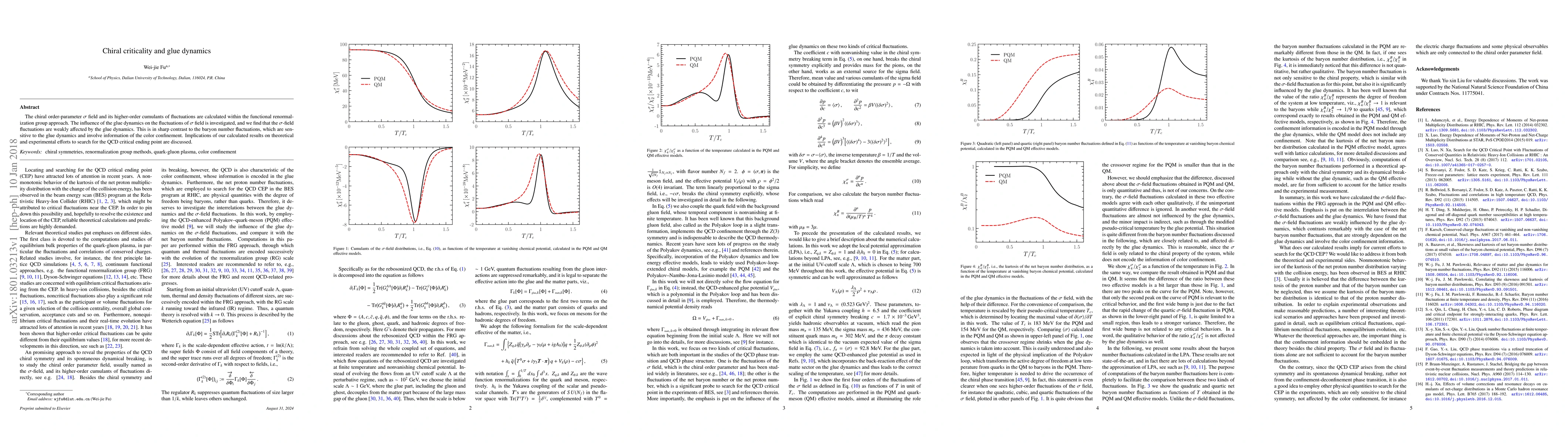 The chiral order-parameter $\sigma$ field and its higher-order cumulants of fluctuations are calculated within the functional renormalization group approach. The influence of the glue dynamics on the fluctuations of $\sigma$ field is investigated, and we find that the $\sigma$-field fluctuations are weakly affected by the glue dynamics. This is in sharp contrast to the baryon number fluctuations, which are sensitive to the glue dynamics and involve information of the color confinement. Implications of our calculated results on theoretical and experimental efforts to search for the QCD critical ending point are discussed.