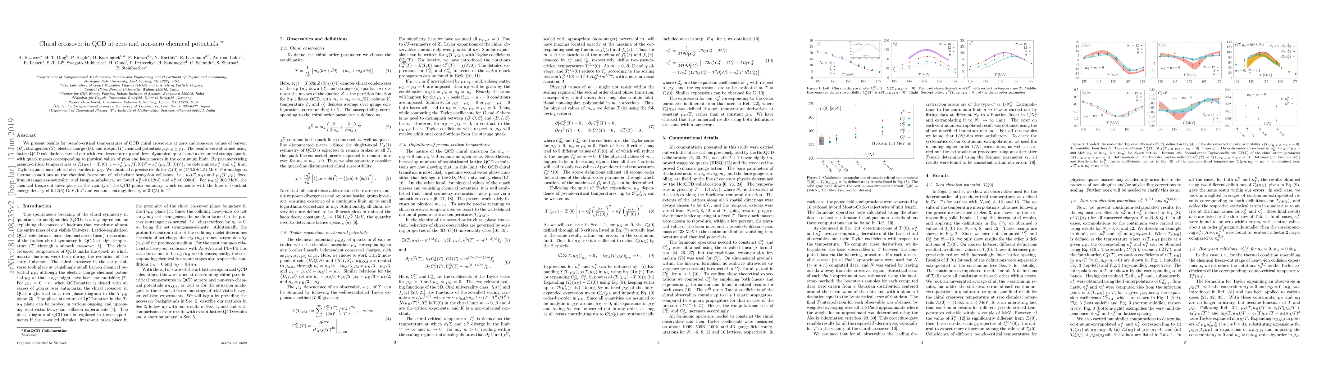 Researchers found a precise pseudo-critical temperature of QCD chiral crossovers at zero chemical potential to be 156.5 MeV, with temperature changes also occurring due to non-zero chemical potentials for baryon, strangeness, charge, and isospin.