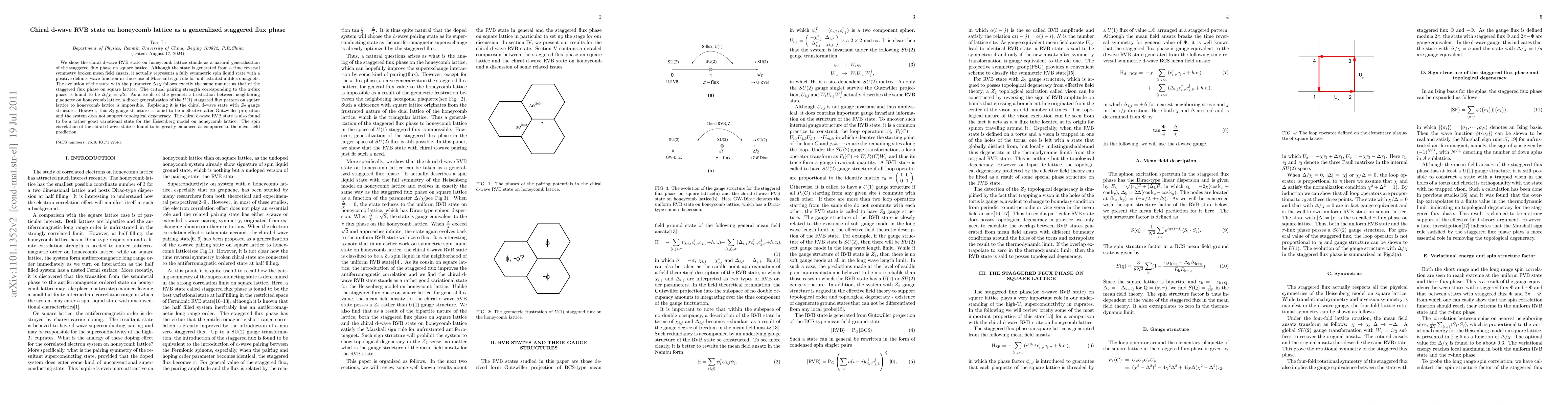 This paper demonstrates that the chiral d-wave RVB state on a honeycomb lattice generalizes the staggered flux phase on a square lattice, representing a symmetric spin liquid state. Despite the mean field ansatz breaking time reversal symmetry, the state maintains a positive definite wave function and supports a critical pairing strength of $\Delta/\chi=\sqrt{2}$.