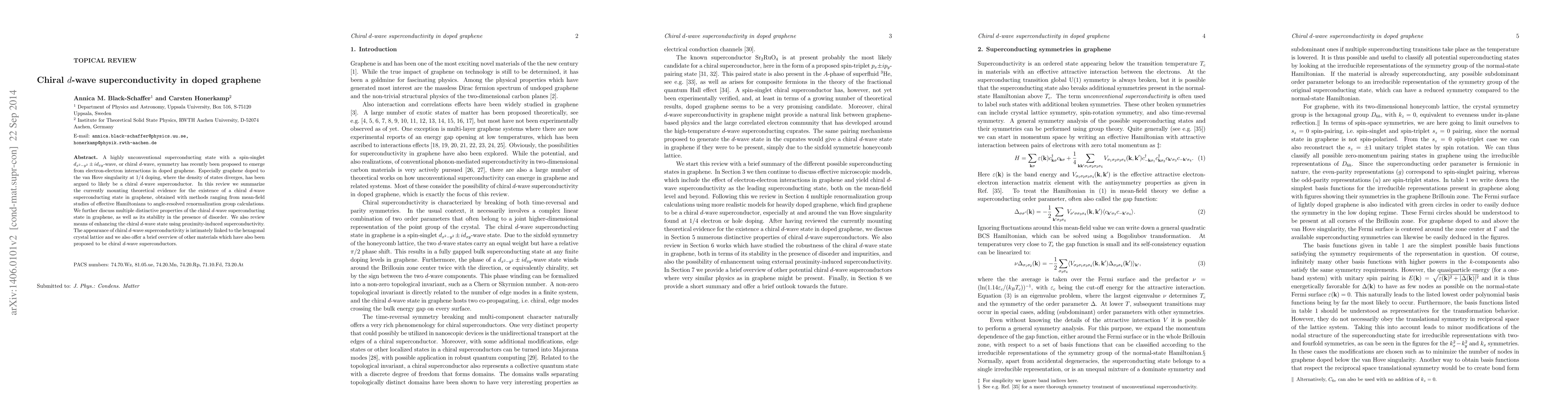 This paper reviews theoretical evidence supporting chiral d-wave superconductivity in doped graphene, highlighting its unique properties and stability, and discussing methods to enhance this state, alongside a brief comparison with other materials.
