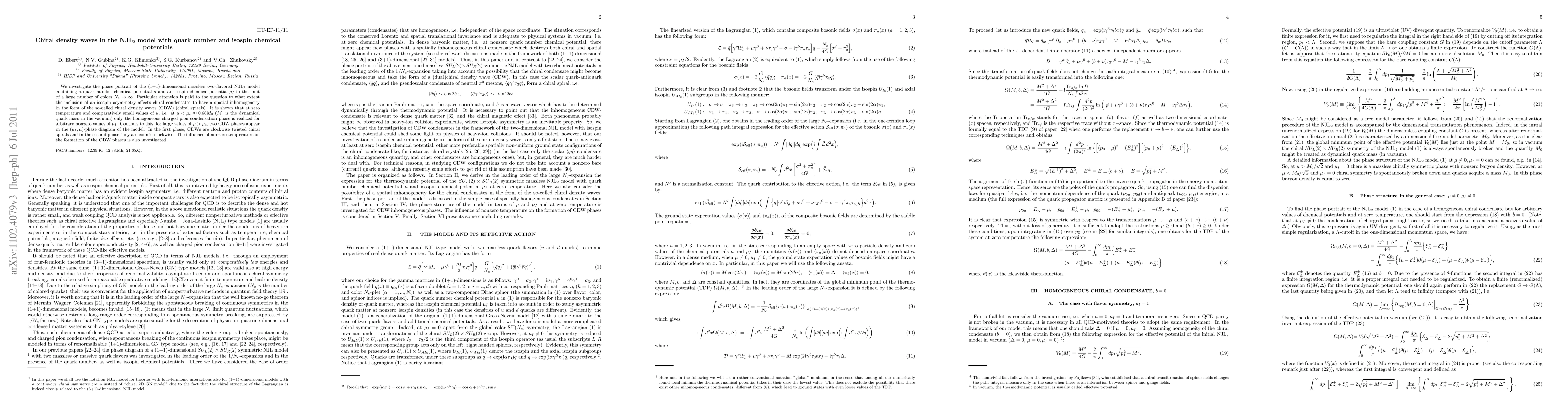This paper explores the phase structure of a 1+1 dimensional NJL$_2$ model with quark number and isospin chemical potentials, revealing that at small chemical potentials, only a homogeneous charged pion phase exists. At larger chemical potentials, chiral density waves emerge, manifesting as clockwise or counterclockwise spirals depending on the isospin asymmetry, with temperature effects also studied.
