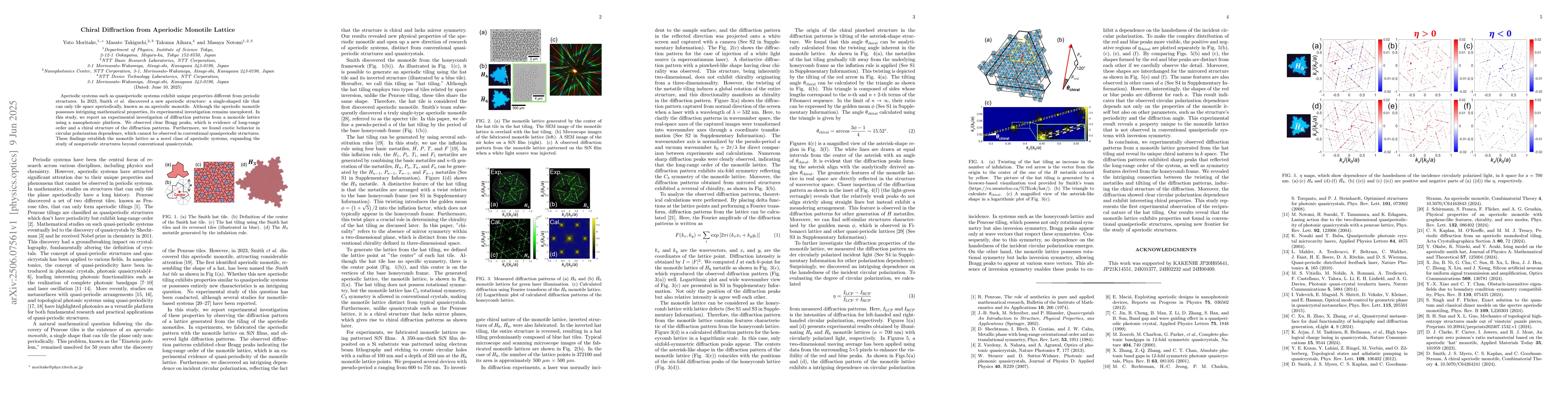 Researchers observed clear Bragg peaks in diffraction patterns from a monotile lattice, indicating long-range order and chiral structure. This discovery establishes the monotile lattice as a new class of aperiodic systems with exotic circular polarization behavior.