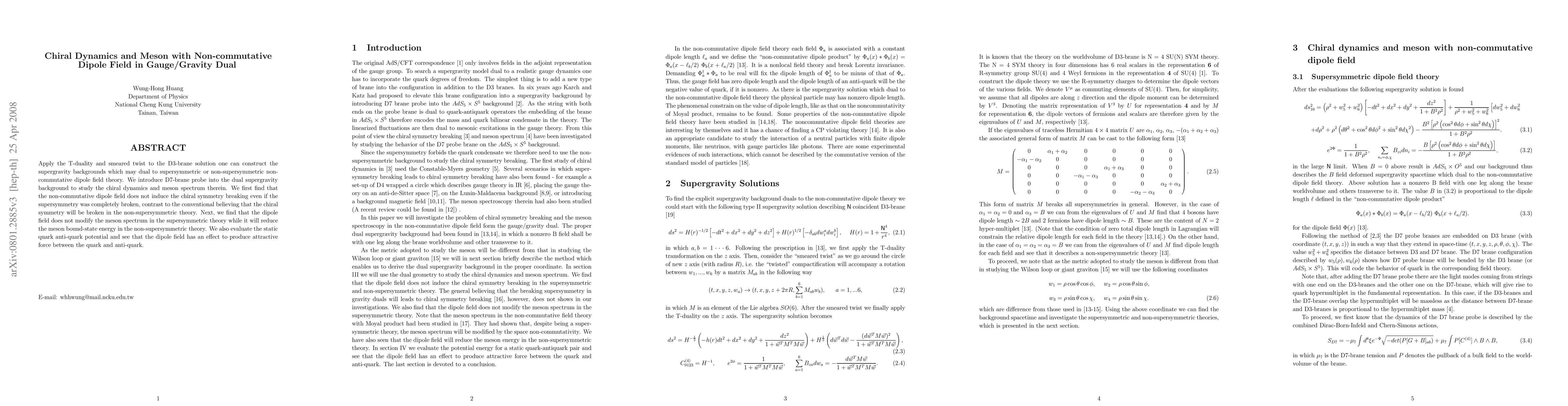 This paper explores chiral dynamics and meson spectra in a gauge/gravity dual with a non-commutative dipole field. It finds that the dipole field does not induce chiral symmetry breaking even in non-supersymmetric scenarios, and it reduces meson bound-state energies in non-supersymmetric theories while leaving them unchanged in supersymmetric ones.