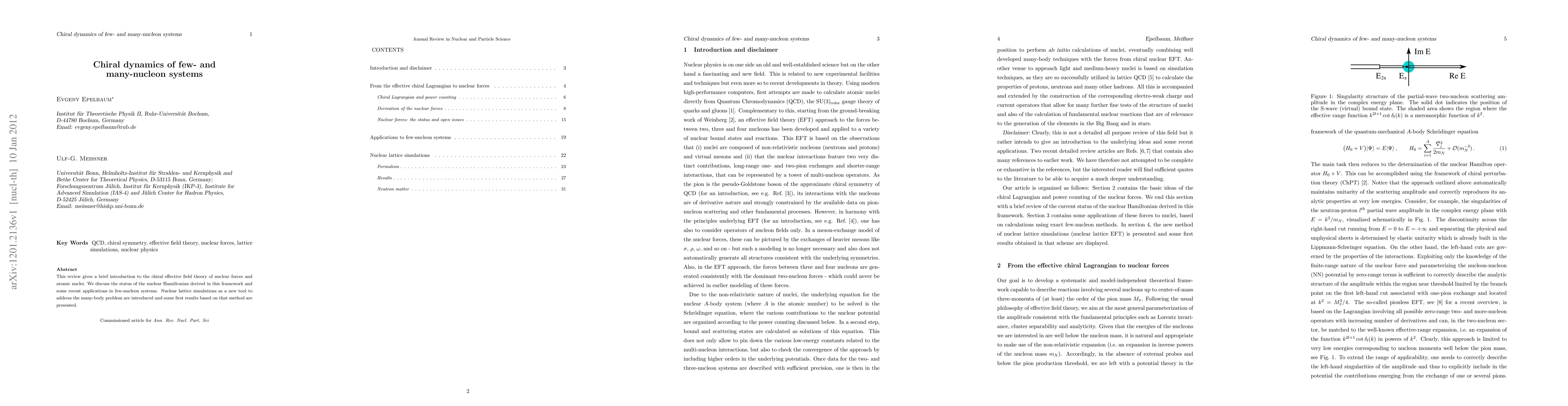 This review introduces chiral effective field theory for nuclear forces and discusses the nuclear Hamiltonian derived from it, highlighting recent applications in few-nucleon systems. It also presents initial results from nuclear lattice simulations for many-nucleon systems.