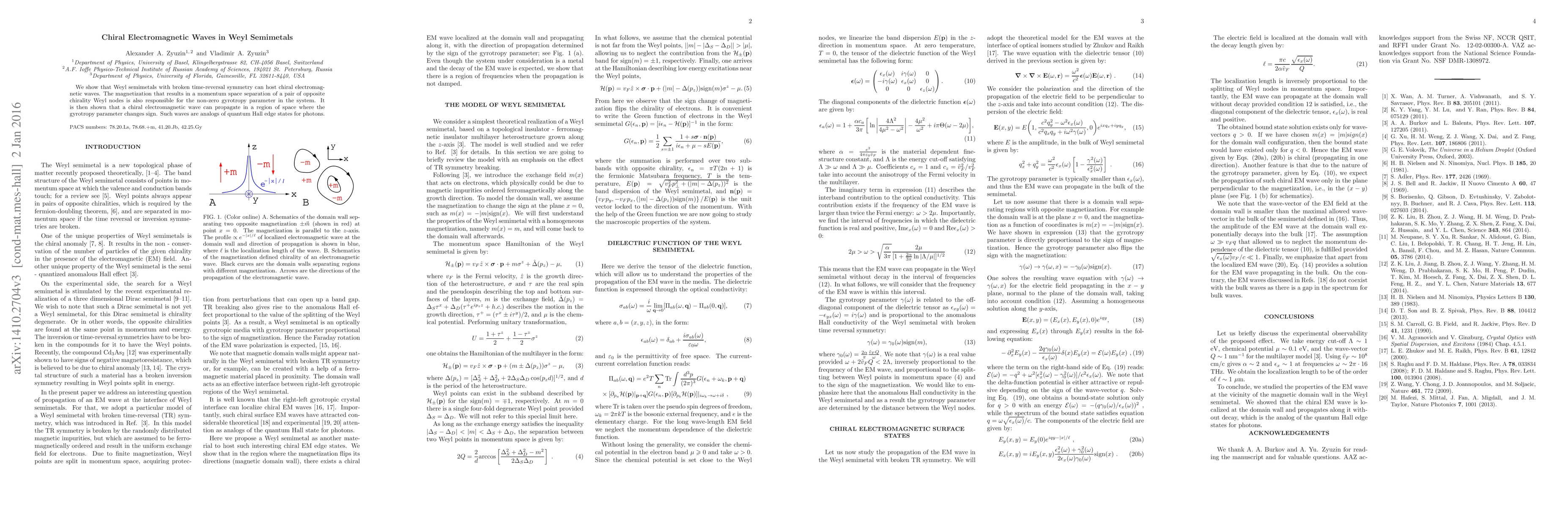 We show that Weyl semimetals with broken time-reversal symmetry can host chiral electromag- netic waves. The magnetization that results in a momentum space separation of a pair of opposite chirality Weyl nodes is also responsible for the non-zero gyrotropy parameter in the system. It is then shown that a chiral electromagnetic wave can propagate in a region of space where the gyrotropy parameter changes sign. Such waves are analogs of quantum Hall edge states for photons.