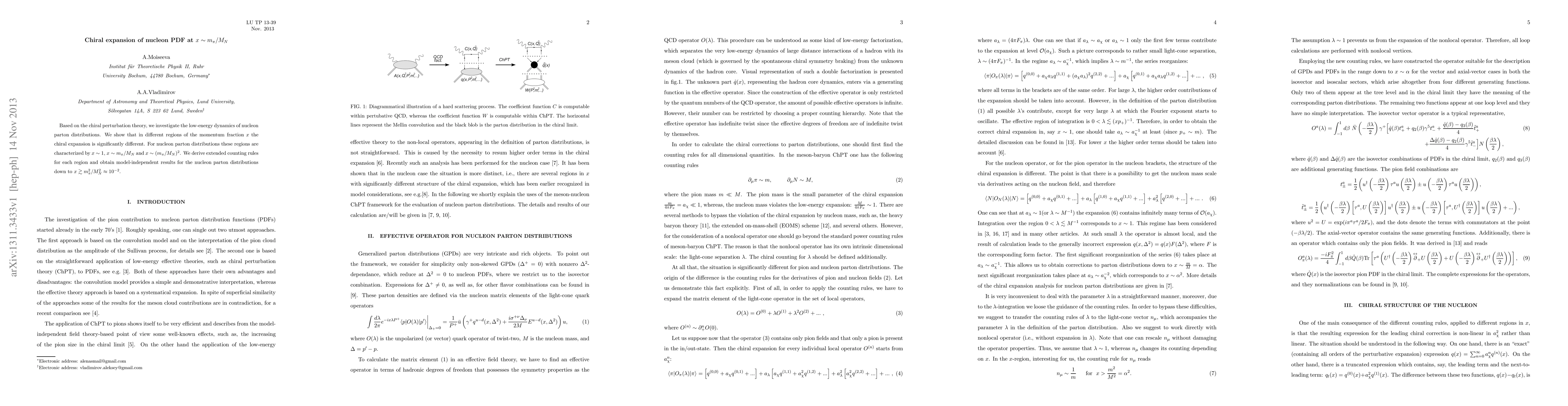 Based on the chiral perturbation theory, we investigate the low-energy dynamics of nucleon parton distributions. We show that in different regions of the momentum fraction $x$ the chiral expansion is significantly different. For nucleon parton distributions these regions are characterized by $x\sim1$, $x\sim m_\pi/M_N$ and $x\sim (m_\pi/M_N)^2$. We derive extended counting rules for each region and obtain model-independent results for the nucleon parton distributions down to $x\gtrsim m^2_\pi/M^2_N \approx 10^{-2}$.