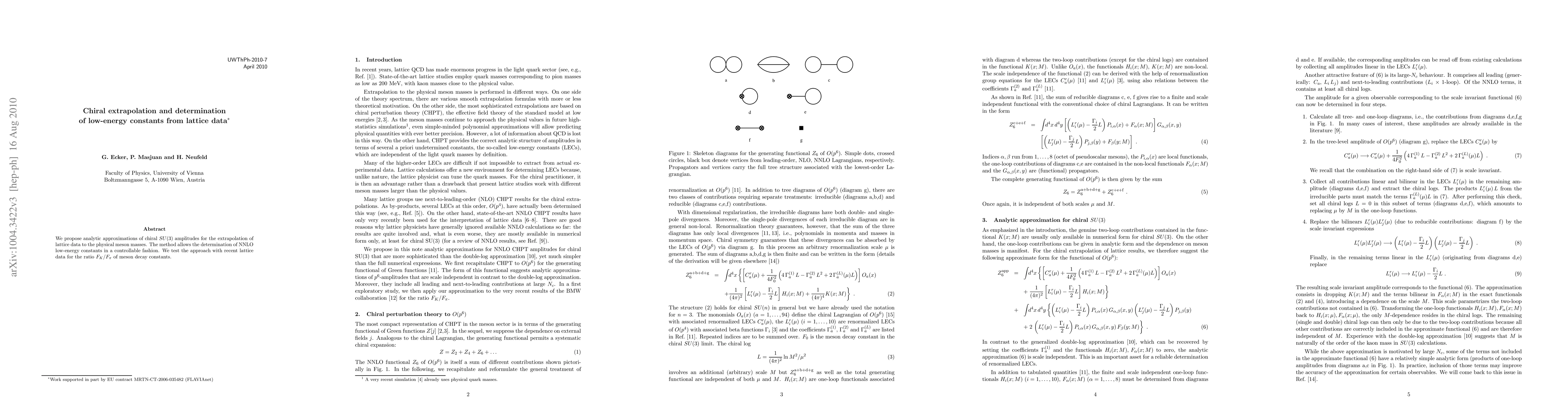 Summary: This paper introduces analytic approximations for chiral SU(3) amplitudes to extrapolate lattice data to physical meson masses, enabling the determination of next-to-next-to-leading order low-energy constants. The method is validated using recent lattice data for the ratio of kaon to pion decay constants.