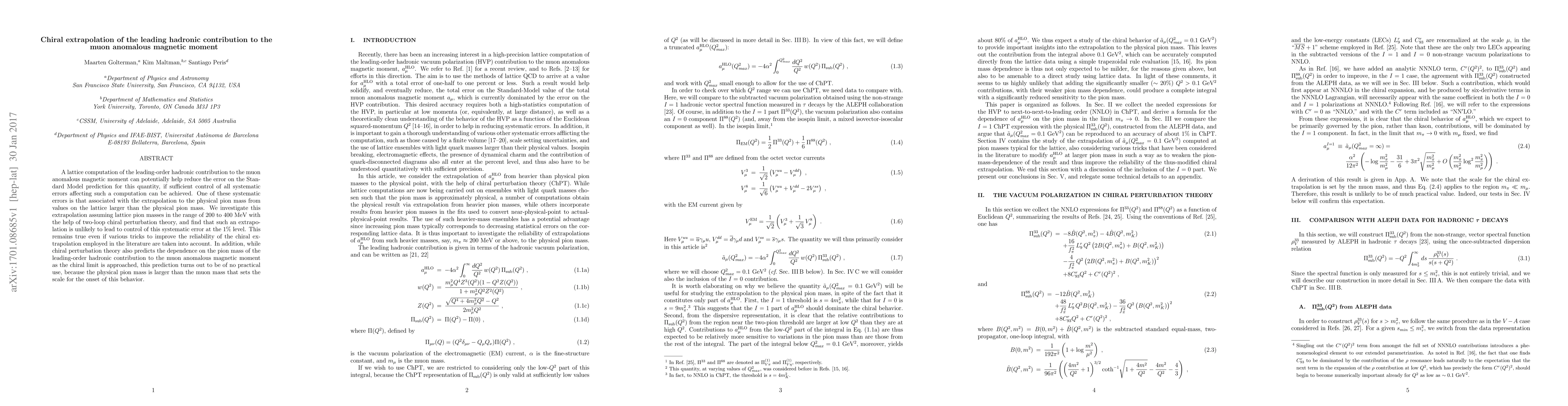 This paper investigates the chiral extrapolation of the leading hadronic contribution to the muon anomalous magnetic moment using lattice computations, finding that achieving a 1% control of systematic errors remains unlikely. Despite employing advanced chiral perturbation theory, the extrapolation does not sufficiently address the error due to the physical pion mass being larger than the muon mass.