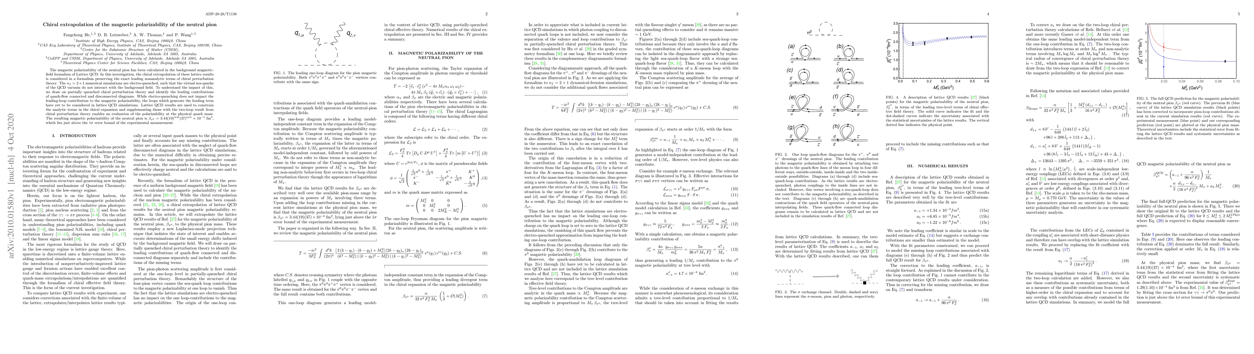 The magnetic polarizability of the neutral pion has been calculated in the background magnetic-field formalism of Lattice QCD. In this investigation, the chiral extrapolation of these lattice results is considered in a formalism preserving the exact leading nonanalytic terms of chiral perturbation theory. The $n_f = 2 + 1$ numerical simulations are electro-quenched, such that the virtual sea-quarks of the QCD vacuum do not interact with the background field. To understand the impact of this, we draw on partially quenched chiral perturbation theory and identify the leading contributions of quark-flow connected and disconnected diagrams. While electro-quenching does not impact the leading-loop contribution to the magnetic polarizability, the loops which generate the leading term have yet to be considered in lattice QCD simulations. Lattice QCD results are used to constrain the analytic terms in the chiral expansion and supplementing those with the two-loop result from chiral perturbation theory enables an evaluation of the polarizability at the physical quark mass. The resulting magnetic polarizability of the neutral pion is $\beta_{\pi^0}=3.44(19)^{\rm stat}(37)^{\rm syst}\times 10^{-4}$ fm$^3$, which lies just above the $1 \sigma$ error bound of the experimental measurement.