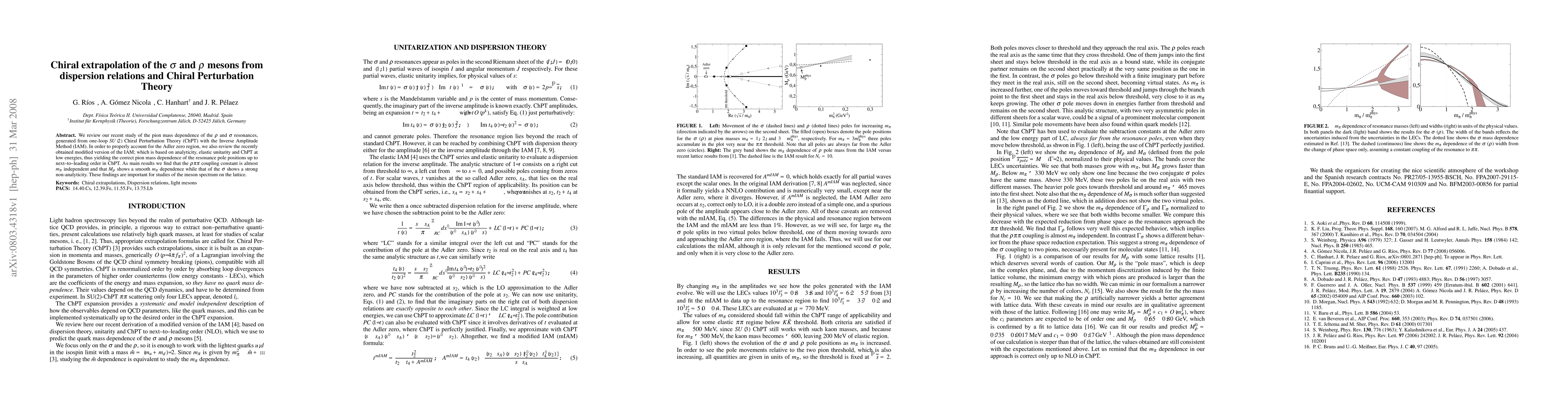 We review our recent study of the pion mass dependence of the rho and sigma resonances, generated from one-loop SU(2) Chiral Perturbation Theory (ChPT) with the Inverse Amplitude Method (IAM). In order to properly account for the Adler zero region, we also review the recently obtained modified version of the IAM; which is based on analyticity, elastic unitarity and ChPT at low energies, thus yielding the correct pion mass dependence of the resonance pole positions up to next-to-leading order in ChPT. As main results we find that the rho-pi-pi coupling constant is almost pion mass independent and that the rho mass shows a smooth pion mass dependence while that of the sigma shows a strong non-analyticity. These findings are important for studies of the meson spectrum on the lattice.