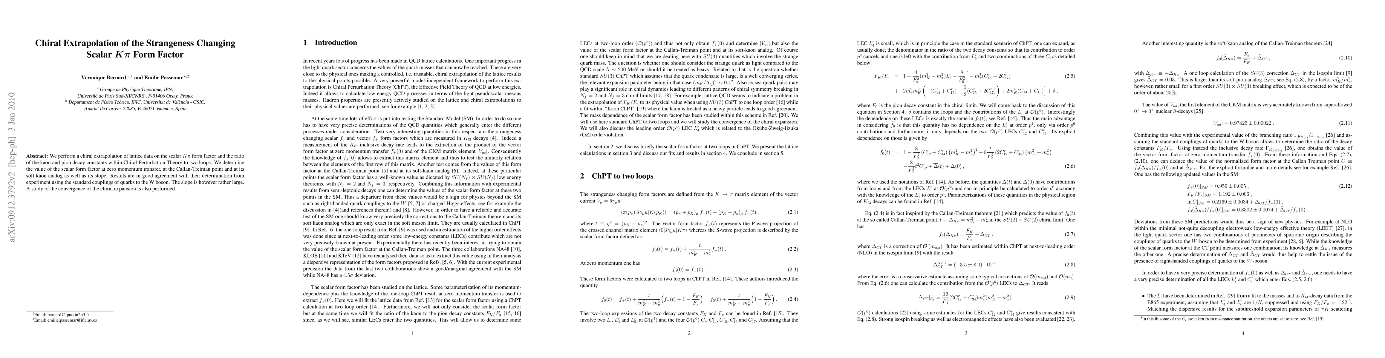 This study uses Chiral Perturbation Theory to extrapolate lattice data on the strangeness changing Kπ form factor and kaon-pion decay constants to two loops, finding good agreement with experimental results for the scalar form factor value and slope, though the slope is notably large. The convergence of the chiral expansion is also examined.