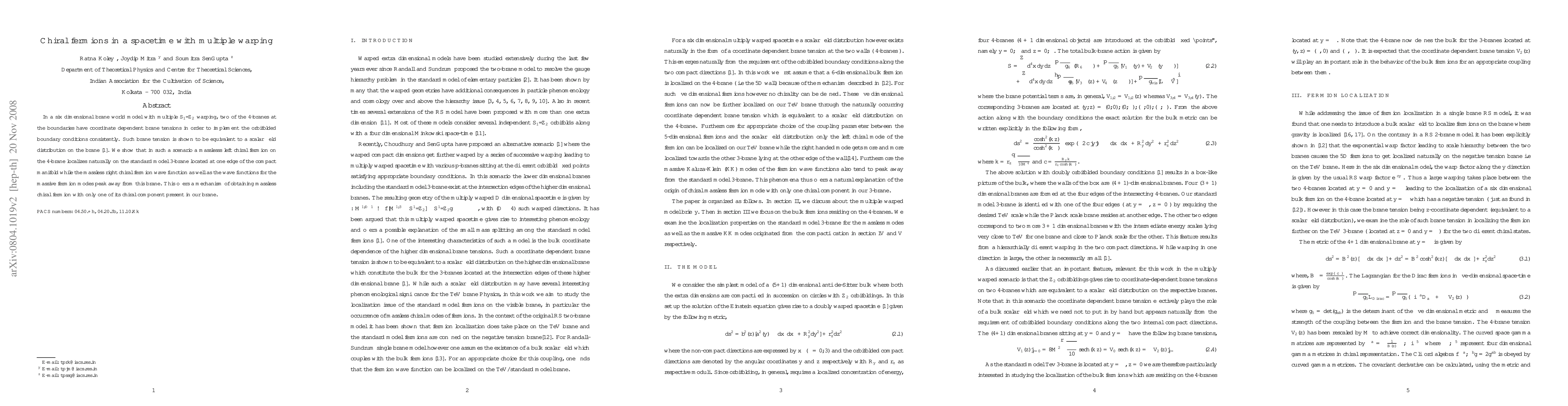 In a six dimensional brane world model with multiple $S_1/Z_2$ warping, two of the 4-branes at the boundaries have coordinate dependent brane tensions in order to implement the orbifolded boundary conditions consistently. Such brane tension is shown to be equivalent to a scalar field distribution on the brane [1]. We show that in such a scenario a masslesss left chiral fermion on the 4-brane localizes naturally on the standard model 3-brane located at one edge of the compact manifold while the massless right chiral fermion wave function as well as the wave functions for the massive fermion modes peak away from this brane. This offers a mechanism of obtaining massless chiral fermion with only one of its chiral component present in our brane.