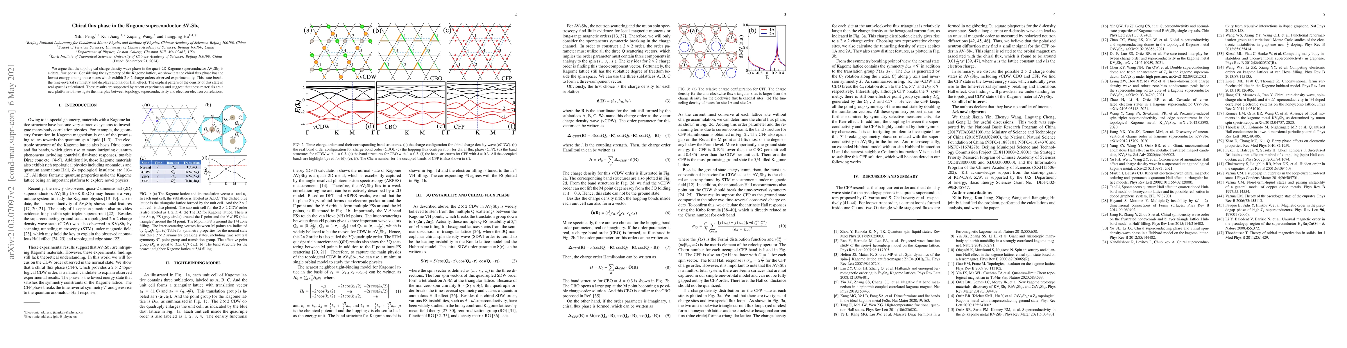 Researchers argue that a topological charge density wave phase in AV$_3$Sb$_5$, a Kagome superconductor, is a chiral flux phase with lowest energy among observed $2 imes2$ charge orders, breaking time-reversal symmetry and exhibiting anomalous Hall effect.