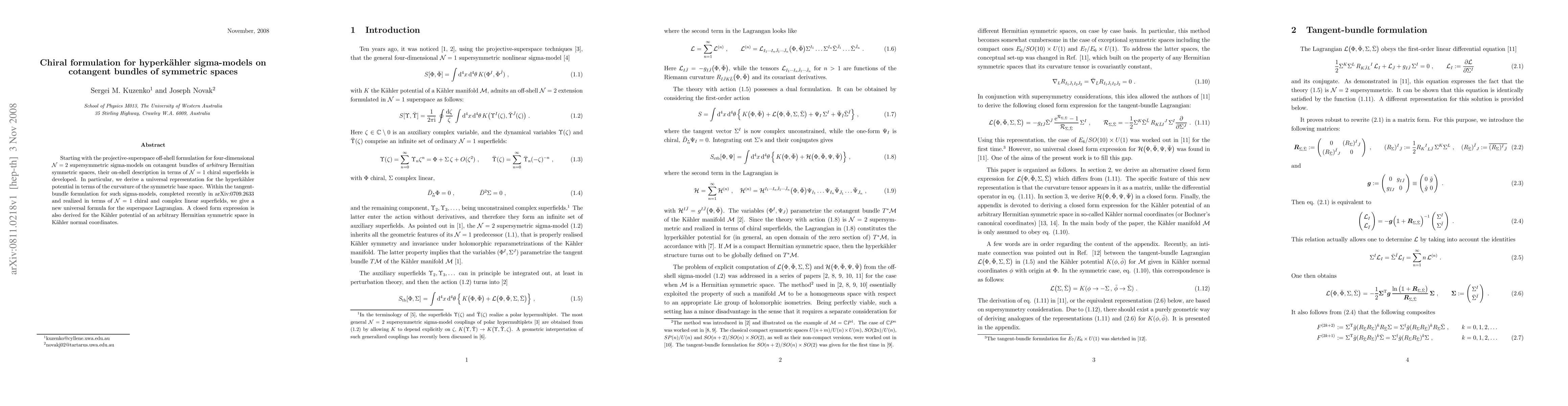 Starting with the projective-superspace off-shell formulation for four-dimensional N = 2 supersymmetric sigma-models on cotangent bundles of arbitrary Hermitian symmetric spaces, their on-shell description in terms of N = 1 chiral superfields is developed. In particular, we derive a universal representation for the hyperkaehler potential in terms of the curvature of the symmetric base space. Within the tangent-bundle formulation for such sigma-models, completed recently in arXiv:0709.2633 and realized in terms of N = 1 chiral and complex linear superfields, we give a new universal formula for the superspace Lagrangian. A closed form expression is also derived for the Kaehler potential of an arbitrary Hermitian symmetric space in Kaehler normal coordinates.