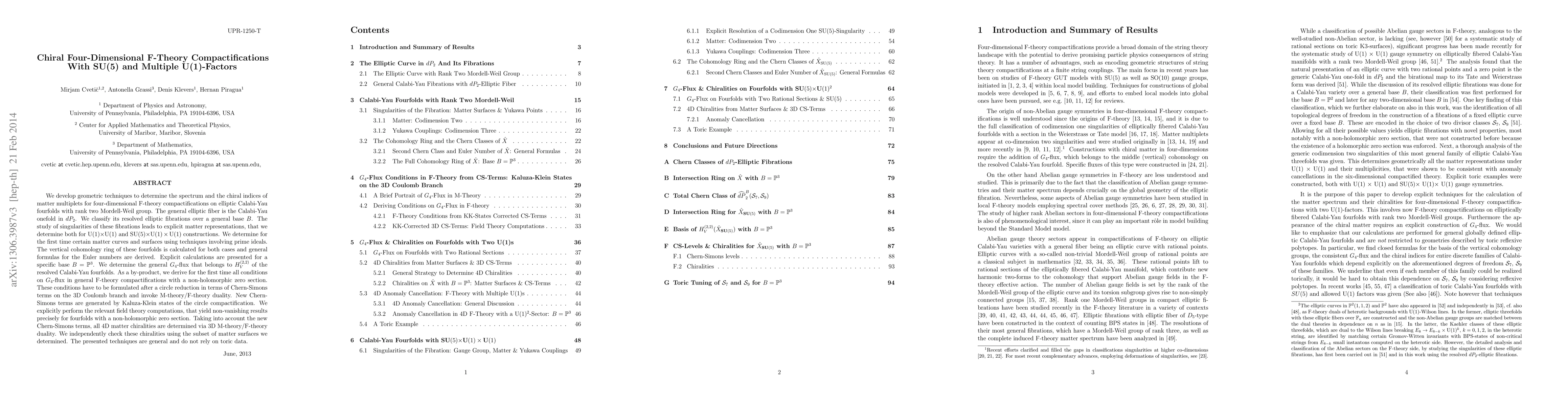We develop geometric techniques to determine the spectrum and the chiral indices of matter multiplets for four-dimensional F-theory compactifications on elliptic Calabi-Yau fourfolds with rank two Mordell-Weil group. The general elliptic fiber is the Calabi-Yau onefold in dP_2. We classify its resolved elliptic fibrations over a general base B. The study of singularities of these fibrations leads to explicit matter representations, that we determine both for U(1)xU(1) and SU(5)xU(1)xU(1) constructions. We determine for the first time certain matter curves and surfaces using techniques involving prime ideals. The vertical cohomology ring of these fourfolds is calculated for both cases and general formulas for the Euler numbers are derived. Explicit calculations are presented for a specific base B=P^3. We determine the general G_4-flux that belongs to H^{(2,2)}_V of the resolved Calabi-Yau fourfolds. As a by-product, we derive for the first time all conditions on G_4-flux in general F-theory compactifications with a non-holomorphic zero section. These conditions have to be formulated after a circle reduction in terms of Chern-Simons terms on the 3D Coulomb branch and invoke M-theory/F-theory duality. New Chern-Simons terms are generated by Kaluza-Klein states of the circle compactification. We explicitly perform the relevant field theory computations, that yield non-vanishing results precisely for fourfolds with a non-holomorphic zero section. Taking into account the new Chern-Simons terms, all 4D matter chiralities are determined via 3D M-theory/F-theory duality. We independently check these chiralities using the subset of matter surfaces we determined. The presented techniques are general and do not rely on toric data.