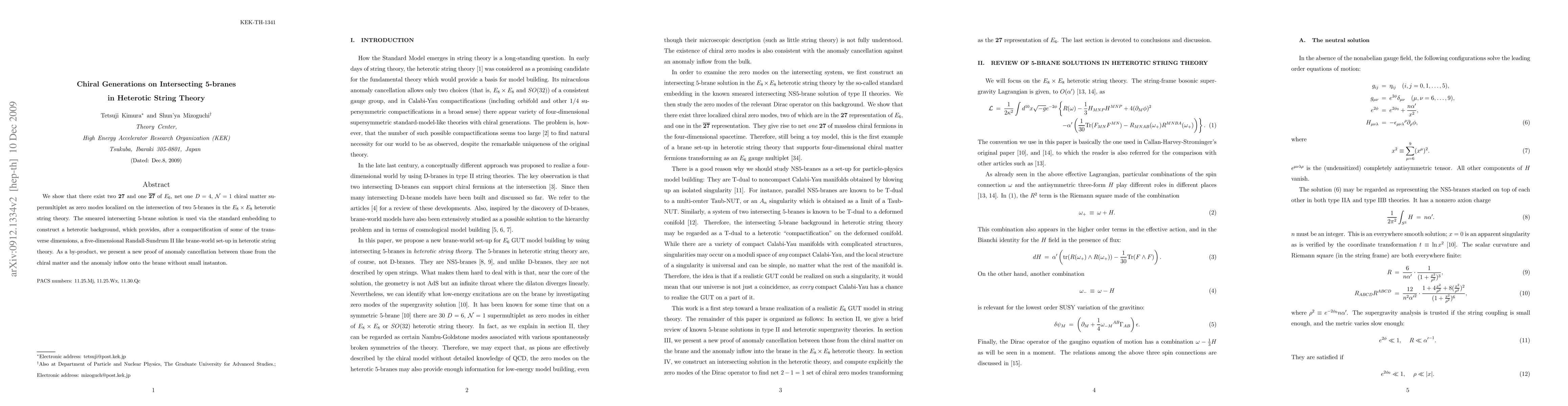 This paper demonstrates the existence of specific chiral matter supermultiplets on intersecting 5-branes in E8 x E8 heterotic string theory, resulting in a five-dimensional brane-world model similar to Randall-Sundrum II, with a new proof of anomaly cancellation.