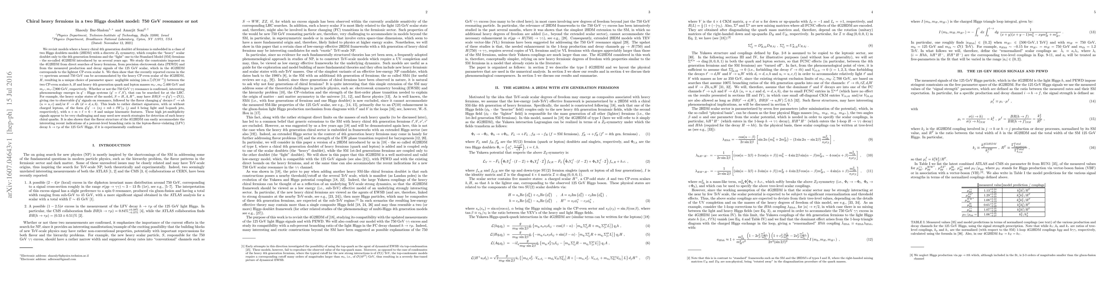 We revisit models where a heavy chiral 4th generation doublet of fermions is embedded in a class of two Higgs doublets models (2HDM) with a discrete $Z_2$ symmetry, which couples the "heavy" scalar doublet only to the 4th generation fermions and the "light" one to the Standard Model (SM) fermions - the so-called 4G2HDM introduced by us several years ago. We study the constraints imposed on the 4G2HDM from direct searches of heavy fermions, from precision electroweak data (PEWD) and from the measured production and decay signals of the 125 GeV scalar, which in the 4G2HDM corresponds to the lightest CP-even scalar h. We then show that the recently reported excess in the $\gamma\gamma$ spectrum around 750 GeV can be accommodated by the heavy CP-even scalar of the 4G2HDM, H, resulting in a unique choice of parameter space: negligible mixing (sin\alpha ~ O(0.001)) between the two CP-even scalars h,H and heavy 4th generation quark and lepton masses m_t',m_b' < 400 GeV and $m_{\nu'},m_{\tau'}$ > 900 GeV, respectively. Whether or not the 750 GeV \gamma \gamma resonance is confirmed, interesting phenomenology emerges in q' - Higgs systems (q'=t',b'), that can be searched for at the LHC. For example, the heavy scalar states of the model, S=H,A,H^+, may have BR(S -> q'q') ~ O(1), giving rise to observable q'q' signals on resonance, followed by the flavor changing q' decays t'->uh (u=u,c) and/or b'->dh (d=d,s,b). This leads to distinct high jet-multiplicity signatures, with or without charged leptons, of the form q'q' -> (nj + mb + lW)_S (j and b being light and b-quark jets, respectively), with n+m+l =6-8 and unique kinematic features. It is also shown that the 4G2HDM can easily accommodate the interesting recent indications of a percent-level branching ratio in the lepton-flavor-violating (LFV) decay $h \to \tau \mu$ of the 125 GeV Higgs, if confirmed.