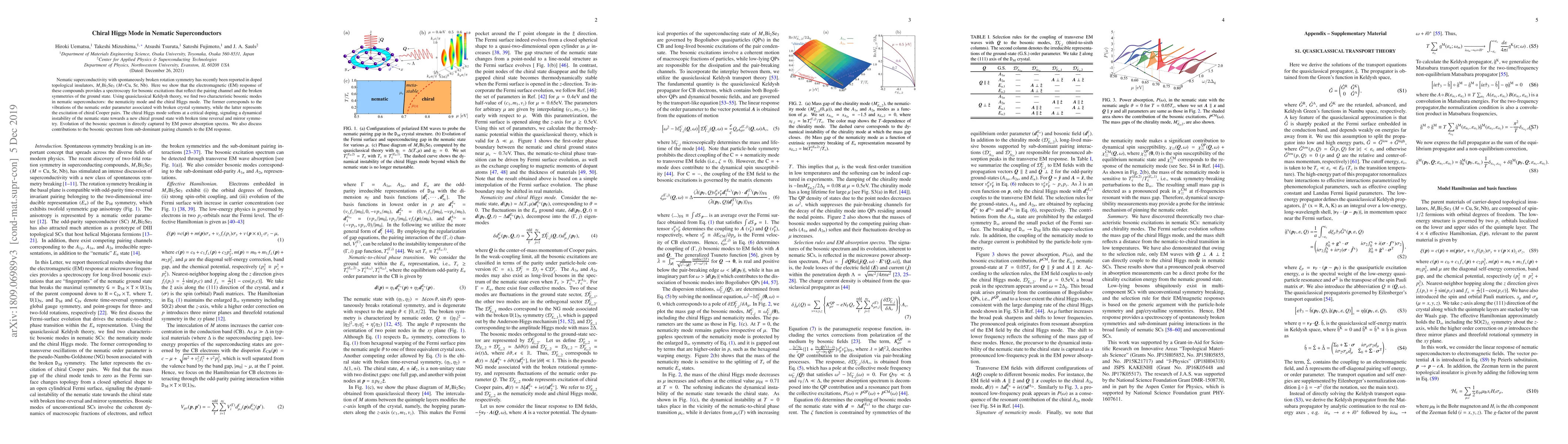 Nematic superconductivity with spontaneously broken rotation symmetry has recently been reported in doped topological insulators, $M_x$Bi$_2$Se$_3$ ($M$=Cu, Sr, Nb). Here we show that the electromagnetic (EM) response of these compounds provides a spectroscopy for bosonic excitations that reflect the pairing channel and the broken symmetries of the ground state. Using quasiclassical Keldysh theory, we find two characteristic bosonic modes in nematic superconductors: the nematicity mode and the chiral Higgs mode. The former corresponds to the vibrations of the nematic order parameter associated with broken crystal symmetry, while the latter represents the excitation of chiral Cooper pairs. The chiral Higgs mode softens at a critical doping, signaling a dynamical instability of the nematic state towards a new chiral ground state with broken time reversal and mirror symmetry. Evolution of the bosonic spectrum is directly captured by EM power absorption spectra. We also discuss contributions to the bosonic spectrum from sub-dominant pairing channels to the EM response.
