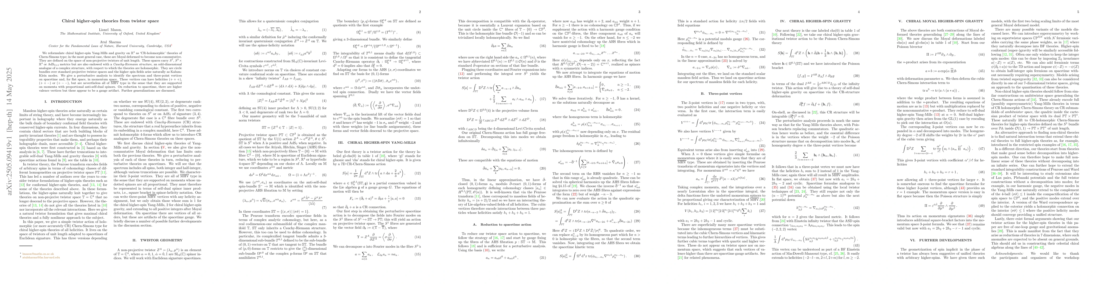 Researchers reframe chiral higher-spin theories in twistor space as Chern-Simons type theories with non-commutative Moyal deformation, revealing new insights into their structure and behavior.