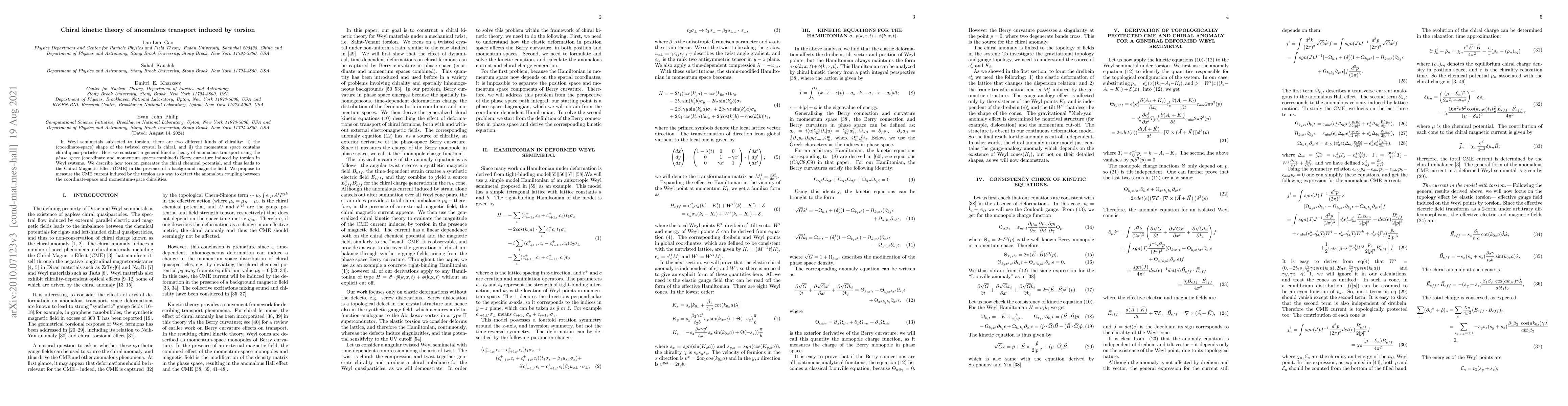 The paper presents a comprehensive kinetic theory incorporating torsion effects in Weyl semimetals, leading to a novel understanding of the chiral magnetic effect and its detection via torsion-induced currents.