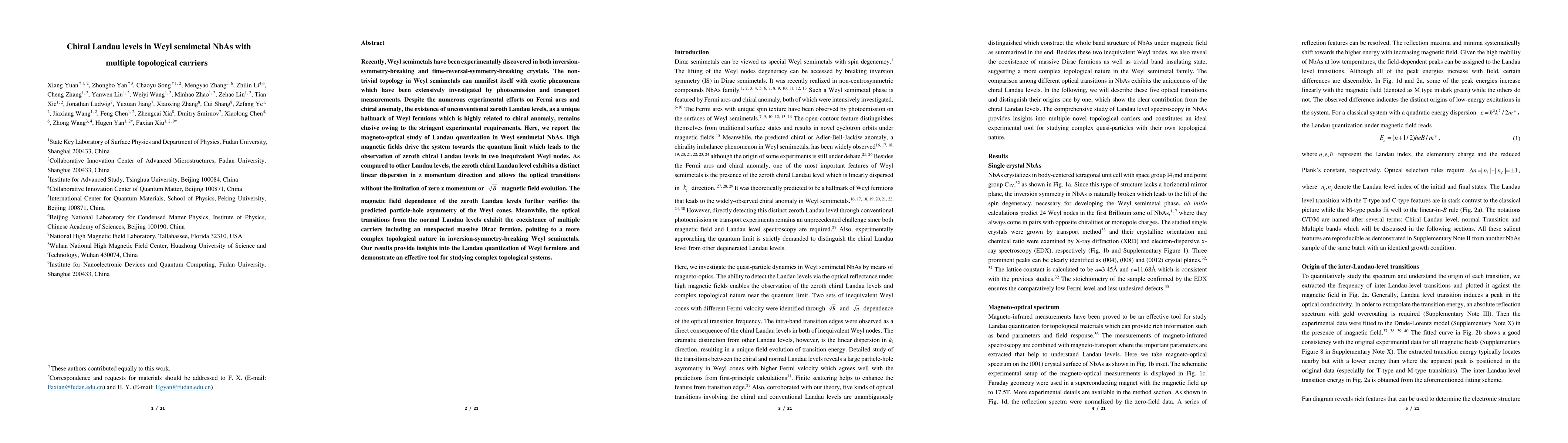 This research reports the observation of zeroth chiral Landau levels in the Weyl semimetal NbAs, revealing a unique quantum behavior of Weyl fermions through magneto-optical studies. The study also uncovers multiple topological carriers, including an unexpected massive Dirac fermion, indicating a more intricate topological nature of these materials.