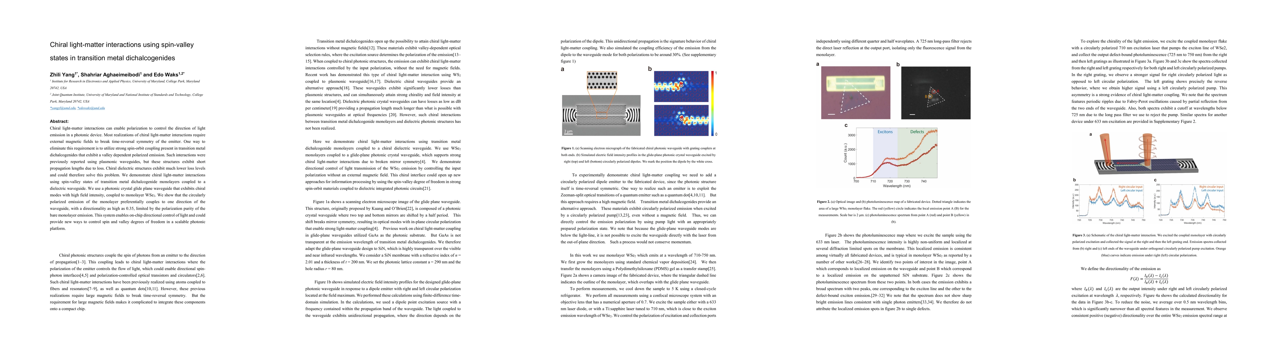 This paper demonstrates chiral light-matter interactions using spin-valley states in transition metal dichalcogenide monolayers coupled to a dielectric waveguide, achieving high directional emission without external magnetic fields. The system shows potential for scalable photonic devices with on-chip directional light control.