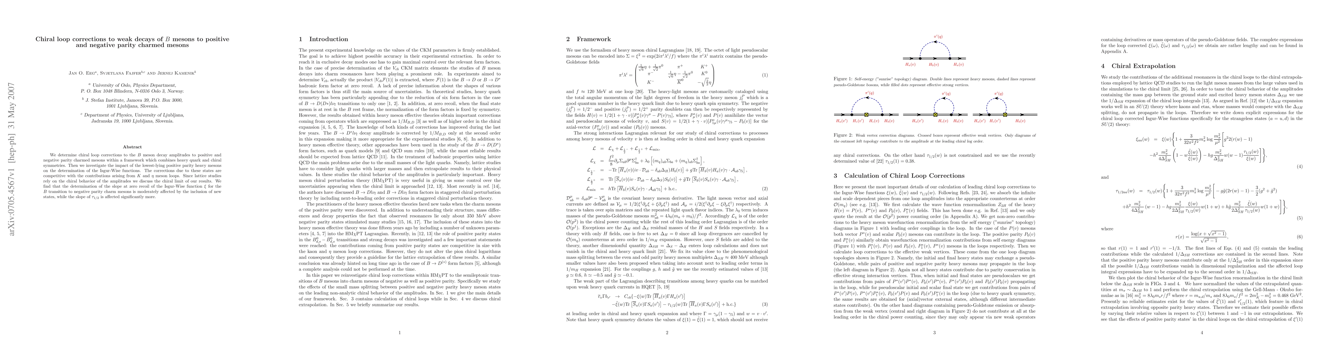This paper calculates chiral loop corrections for B meson decays to positive and negative parity charmed mesons, combining heavy quark and chiral symmetries. It finds that the lowest-lying positive parity heavy mesons significantly impact the Isgur-Wise functions, with notable effects on the slope of tau_{1/2}.
