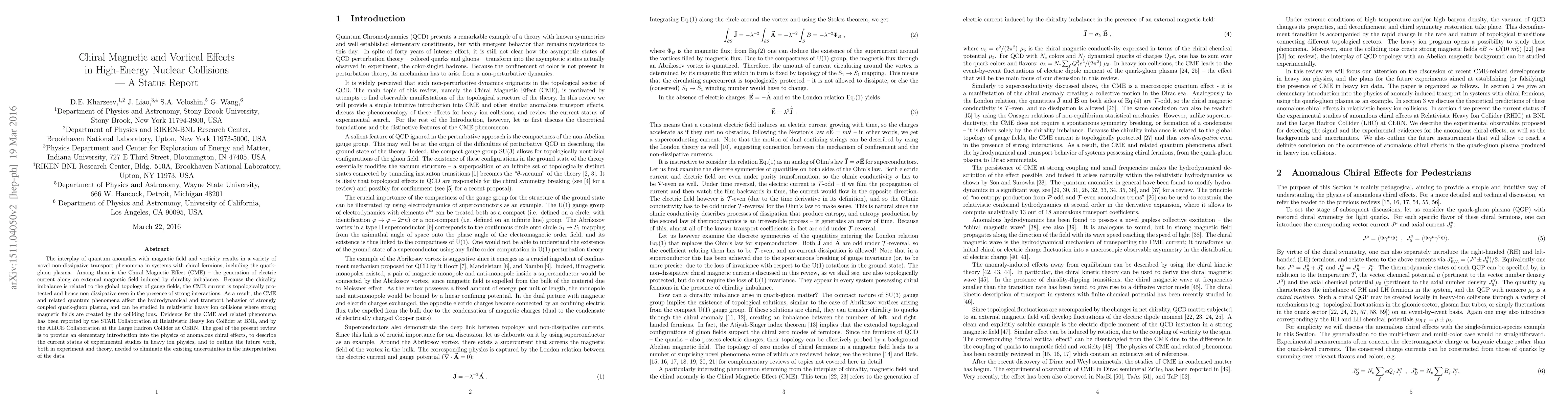 This paper reviews the Chiral Magnetic Effect (CME) in high-energy nuclear collisions, explaining how chirality imbalance generates current along magnetic fields, topologically protected and non-dissipative. Evidence for CME has been found in heavy ion collisions experiments at STAR and ALICE, aiming to clarify existing uncertainties in data interpretation with future experimental and theoretical work.
