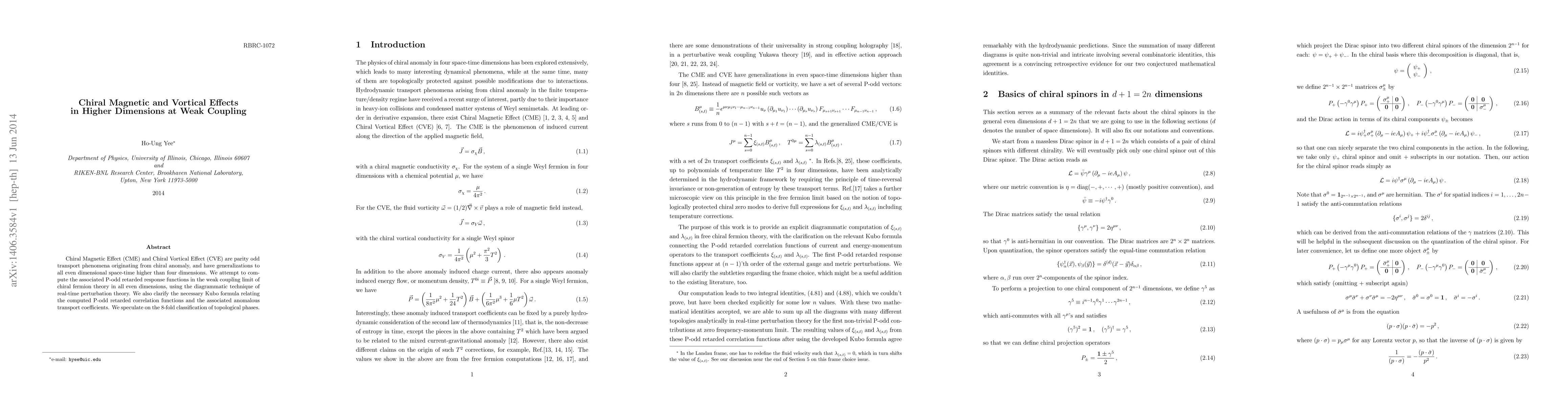 This paper investigates the Chiral Magnetic and Vortical Effects in higher-dimensional spacetimes, computing P-odd retarded response functions in the weak coupling limit using real-time perturbation theory. It also establishes the Kubo formula for these effects and discusses the classification of topological phases.