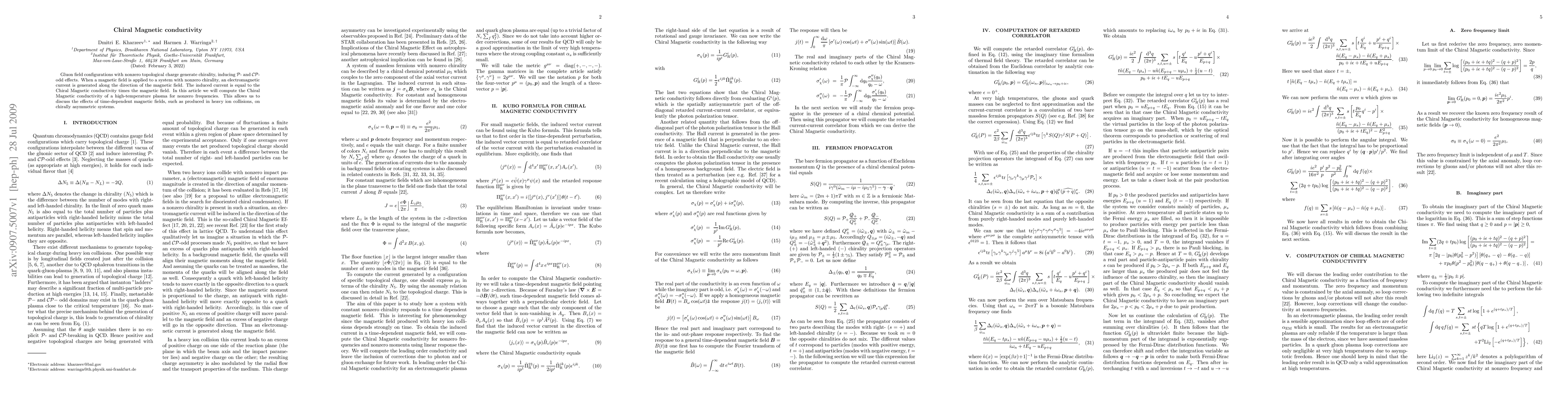 This paper computes the Chiral Magnetic conductivity in high-temperature plasmas for nonzero frequencies, exploring the electromagnetic current generated by magnetic fields in chirally asymmetric systems, relevant to phenomena in heavy ion collisions.