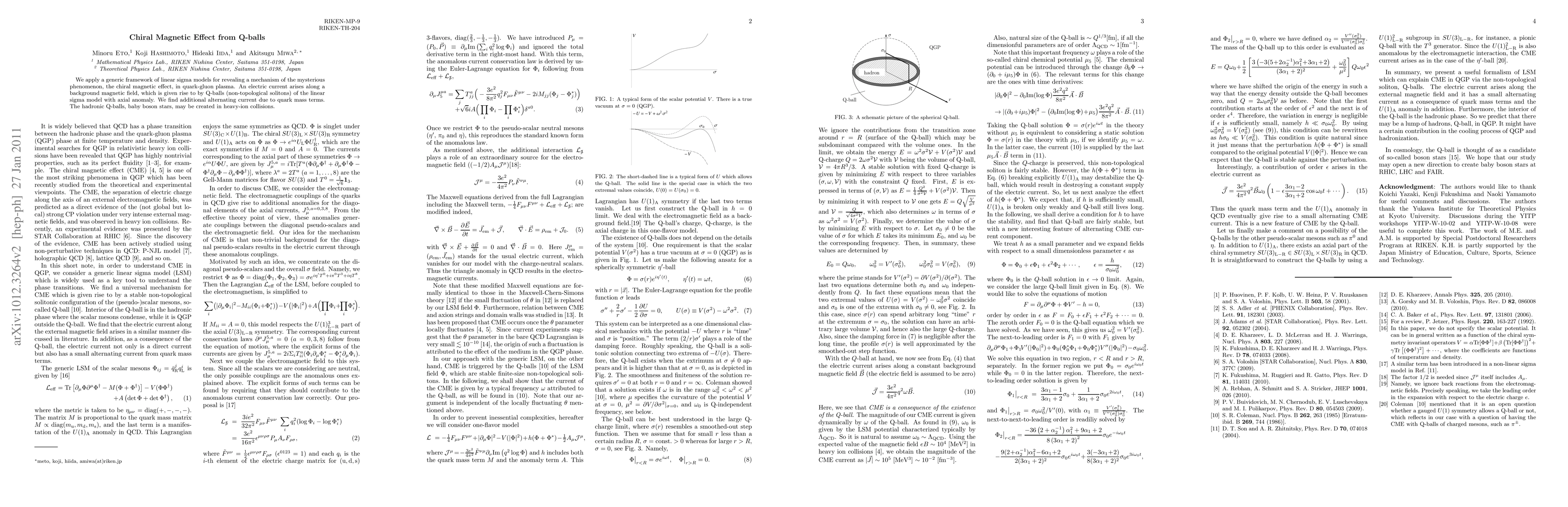 We apply a generic framework of linear sigma models for revealing a mechanism of the mysterious phenomenon, the chiral magnetic effect, in quark-gluon plasma. An electric current arises along a background magnetic field, which is given rise to by Q-balls (non-topological solitons) of the linear sigma model with axial anomaly. We find additional alternating current due to quark mass terms. The hadronic Q-balls, baby boson stars, may be created in heavy-ion collisions.