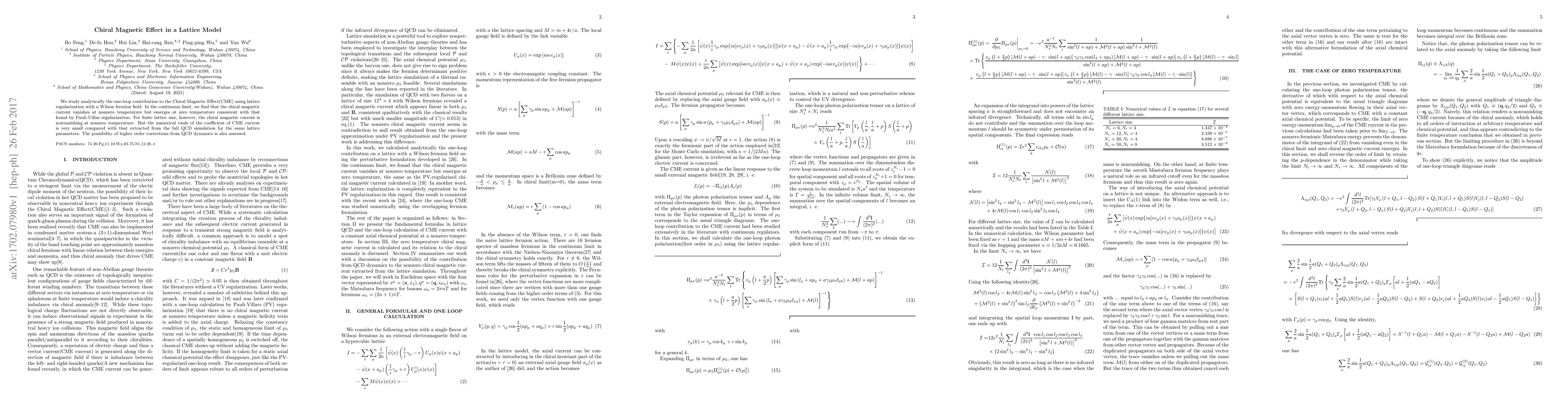 We study analytically the one-loop contribution to the Chiral Magnetic Effect(CME) using lattice regularization with a Wilson fermion field. In the continuum limit, we find that the chiral magnetic current vanishes at nonzero temperature but emerges at zero temperature consistent with that found by Pauli-Villas regularization. For finite lattice size, however, the chiral magnetic current is nonvanishing at nonzero temperature. But the numerical vaule of the coefficient of CME current is very small compared with that extracted from the full QCD simulation for the same lattice parameters. The possibility of higher order corrections from QCD dynamics is also assessed.