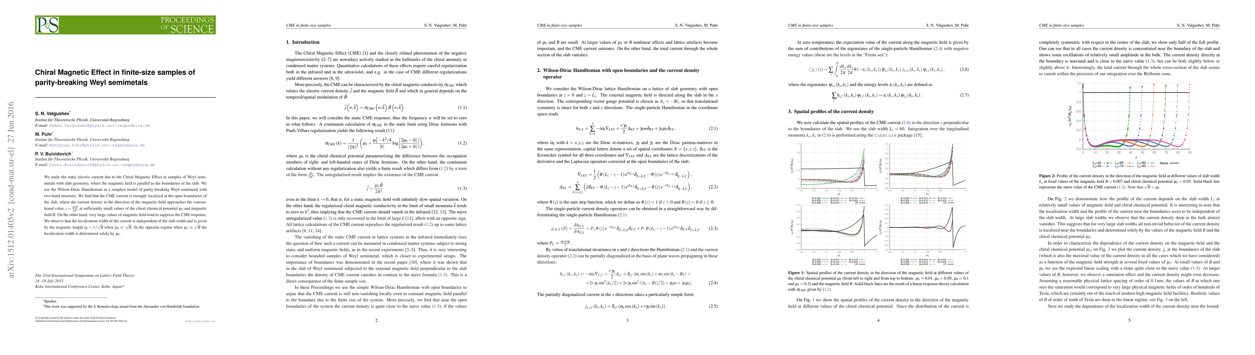 This study investigates the Chiral Magnetic Effect in finite-size Weyl semimetal slabs, finding that the CME current is strongly localized at the open boundaries and approaches a conventional value under small chiral chemical potential and magnetic field. The localization width is governed by the magnetic field strength and chiral chemical potential.