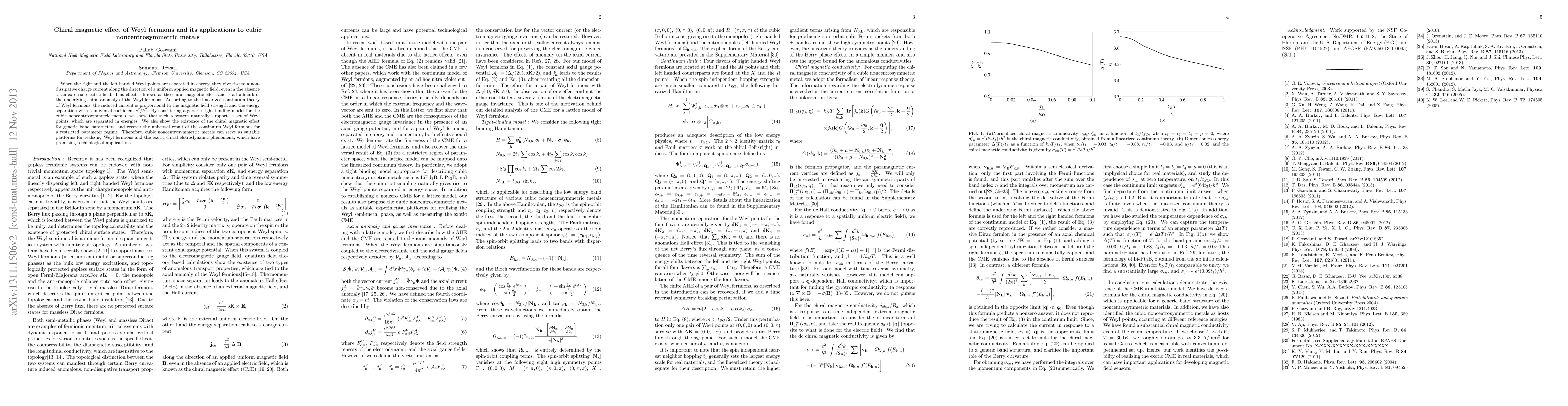 The chiral magnetic effect (CME) of Weyl fermions generates a non-dissipative charge current in cubic noncentrosymmetric metals, even without an external electric field, proportional to the magnetic field strength and energy separation between Weyl points. These materials can support Weyl points, enabling the CME with promising technological applications.