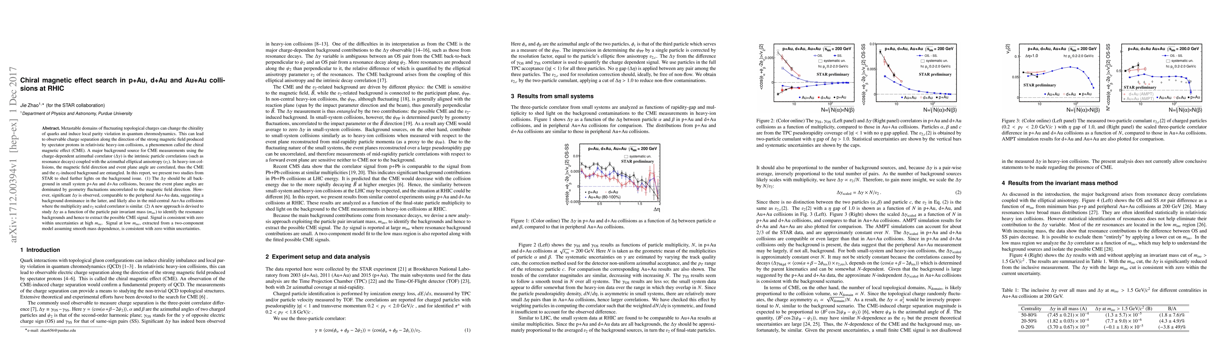 This paper investigates the chiral magnetic effect (CME) in relativistic heavy-ion collisions, finding significant $\Delta\gamma$ in small systems like p+Au and d+Au, suggesting background dominance. A new approach to analyze $\Delta\gamma$ as a function of particle pair invariant mass ($m_{inv}$) identifies resonance backgrounds and indicates no significant CME signal within uncertainties.