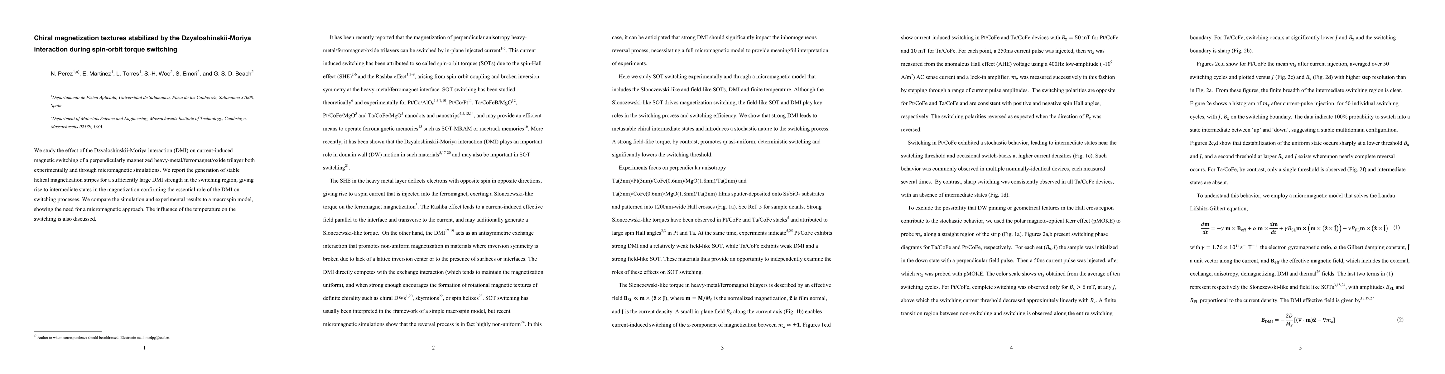 This paper investigates the role of Dzyaloshinskii-Moriya interaction (DMI) in current-induced magnetic switching in a trilayer structure, revealing stable helical magnetization textures and intermediate states, and emphasizes the necessity of micromagnetic simulations over macrospin models. Temperature effects on switching are also analyzed.
