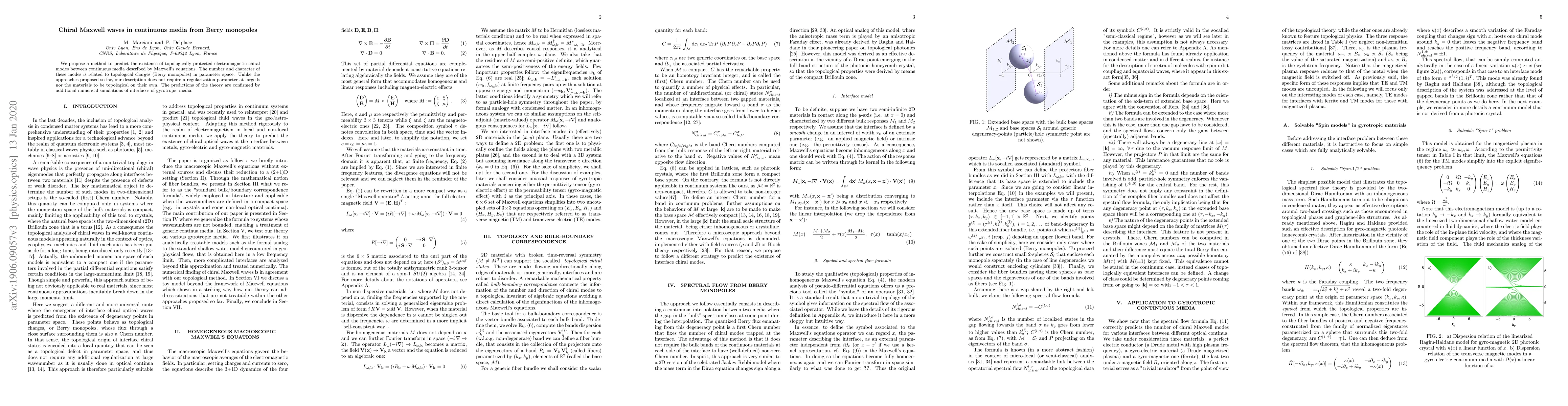 We propose a method to predict the existence of topologically protected electromagnetic chiral modes between continuous media described by Maxwell's equations. The number and character of these modes is related to topological charges (Berry monopoles) in parameter space. Unlike the approaches proposed so far, our description does not require a regularization parameter at large $\mathbf{k}$ nor the materials to be topological on their own. The predictions of the theory are confirmed by additional numerical simulations of interfaces of gyrotropic media.