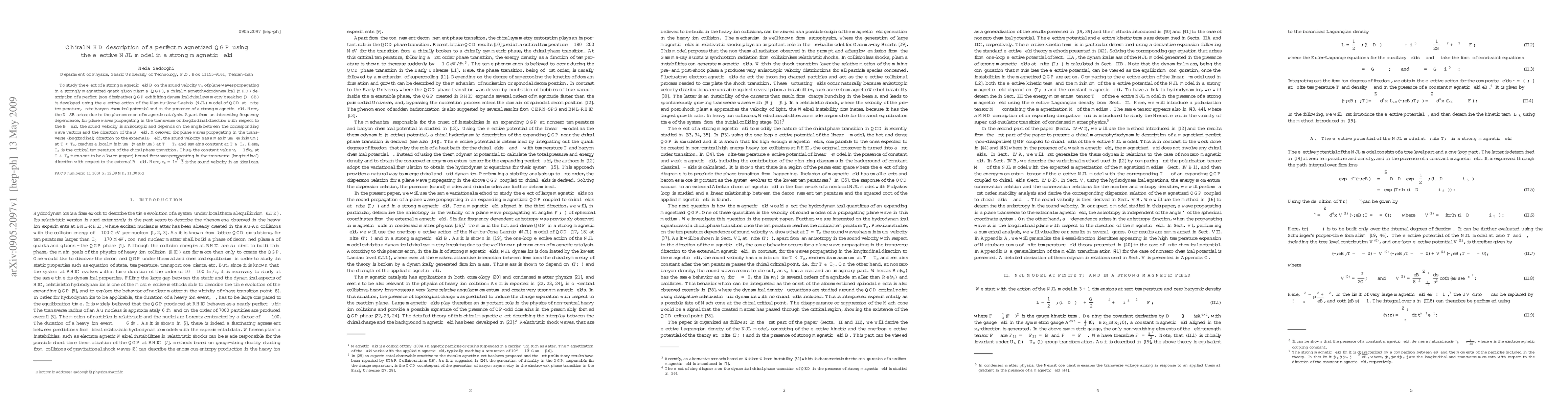 (QGP), a chiral magnetohydrodynamical (MHD) description of a perfect