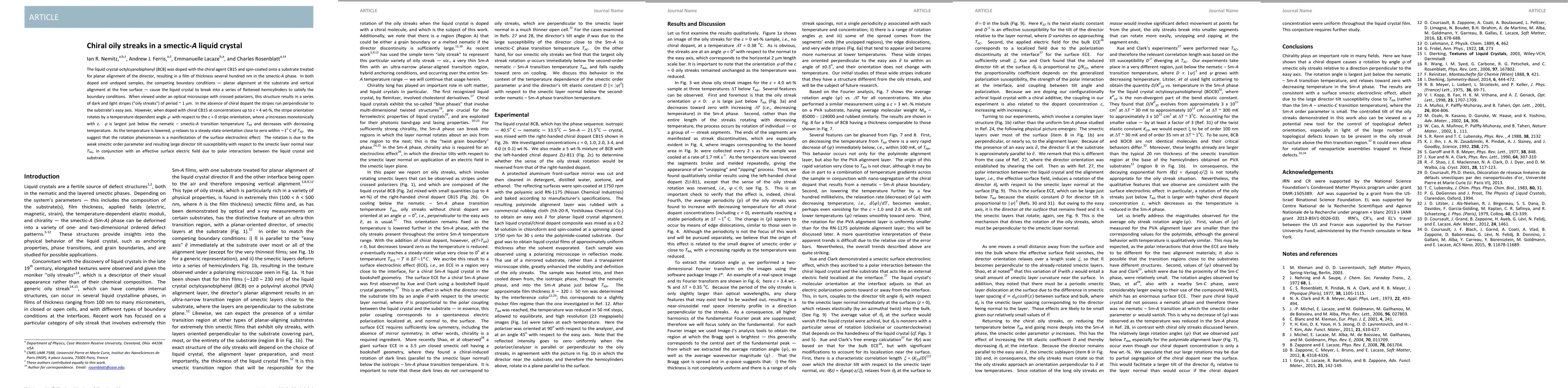 Liquid crystal octylcyanobiphenyl changes stripe orientation with increasing concentration of chiral dopant CB15, shifting from perpendicular to the substrate's easy axis, and rotating by a temperature-dependent angle near the nematic-smectic-A transition.