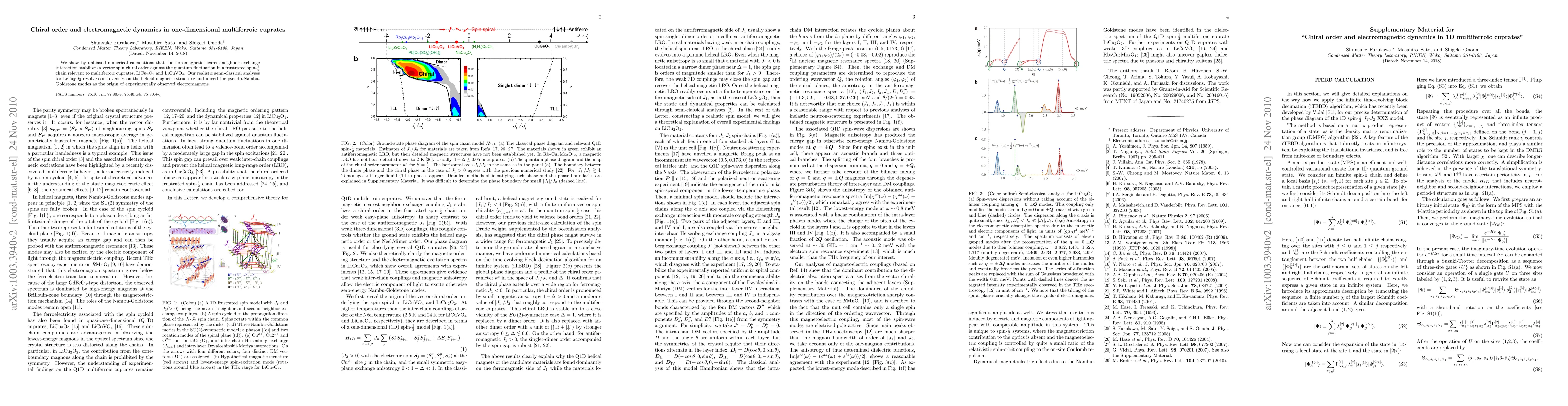 We show by unbiased numerical calculations that the ferromagnetic nearest-neighbor exchange interaction stabilizes a vector spin chiral order against the quantum fluctuation in a frustrated spin-1/2 chain relevant to multiferroic cuprates, LiCu2O2 and LiCuVO4. Our realistic semi-classical analyses for LiCu2O2 resolve controversies on the helical magnetic structure and unveil the pseudo-Nambu-Goldstone modes as the origin of experimentally observed electromagnons.