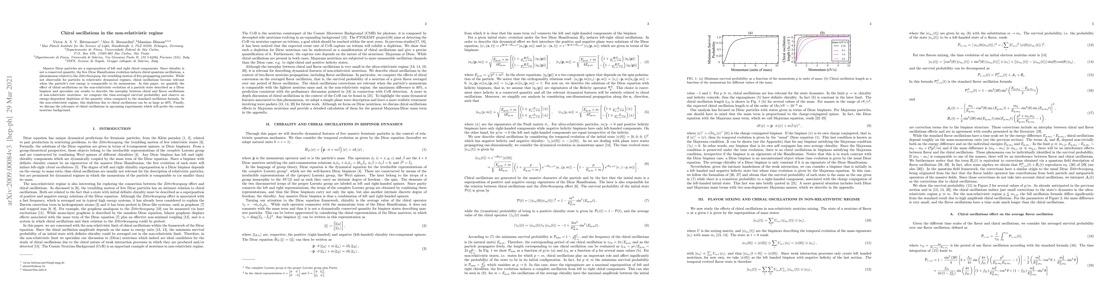 This paper quantifies chiral oscillations in non-relativistic Dirac particles, revealing an energy-dependent depletion in the survival probability of non-relativistic neutrinos, up to 40%, compared to standard oscillation formulas. The findings are relevant for future experiments probing the cosmic neutrino background.