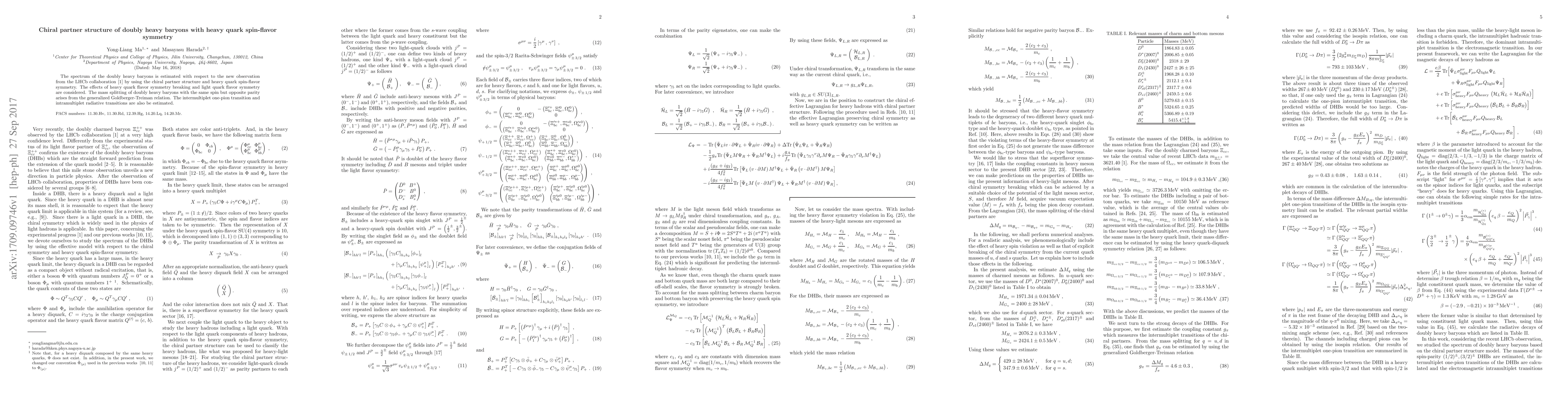 The spectrum of the doubly heavy baryons is estimated with respect to the new observation from the LHCb collaboration [Aaij:2017ueg] by using the chiral partner structure and heavy quark spin-flavor symmetry. The effects of heavy quark flavor symmetry breaking and light quark flavor symmetry are considered. The mass splitting of doubly heavy baryons with the same spin but opposite parity arises from the generalized Goldberger-Treiman relation. The intermultiplet one-pion transition and intramultiplet radiative transitions are also be estimated.