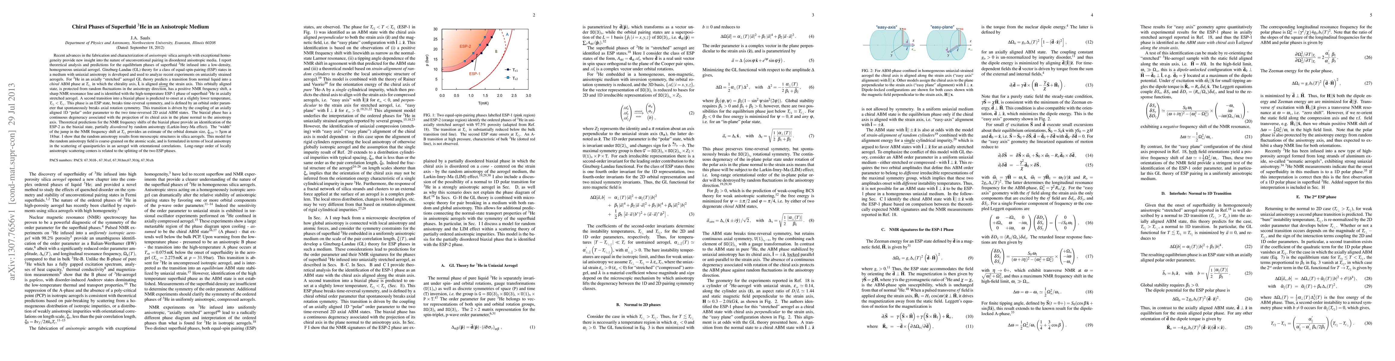 I report theoretical analysis and predictions for the equilibrium phases of superfluid 3He infused into a low-density, homogeneous uniaxial aerogel. Ginzburg-Landau (GL) theory for a class of equal-spin-pairing (ESP) states in a medium with uniaxial anisotropy is developed and used to analyze recent experiments on uniaxially strained aerogels. For 3He in an axially "stretched" aerogel GL theory predicts a transition from normal liquid into a chiral ABM phase at T_c1 in which the chirality axis, l, is aligned along the strain axis. This orbitally aligned state, is protected from random fluctuations in the anisotropy direction, has a positive NMR frequency shift, a sharp NMR resonance line and is identified with the high-temperature ESP-1 phase of superfluid 3He in axially stretched aerogel. A second transition into a biaxial phase is predicted to onset at a slightly lower temperature, T_c2 < T_c1. This phase is an ESP state, breaks time-reversal symmetry, and is defined by an orbital order parameter that spontaneously breaks axial rotation symmetry. This transition is driven by the coupling of an axially aligned 1D "polar" order parameter to the two time-reversed 2D axial ABM states. The biaxial phase has a continuous degeneracy associated with the projection of its chiral axis in the plane normal to the anisotropy axis. Theoretical predictions for the NMR frequency shifts of the biaxial phase provide an identification of the ESP-2 as the biaxial state, partially disordered by random anisotropy (Larkin-Imry-Ma effect). The "width" of the jump in the NMR frequency shift at T_c2 provides an estimate of the orbital domain size, xi_LIM ~ 5 mu-m at 18 bar.