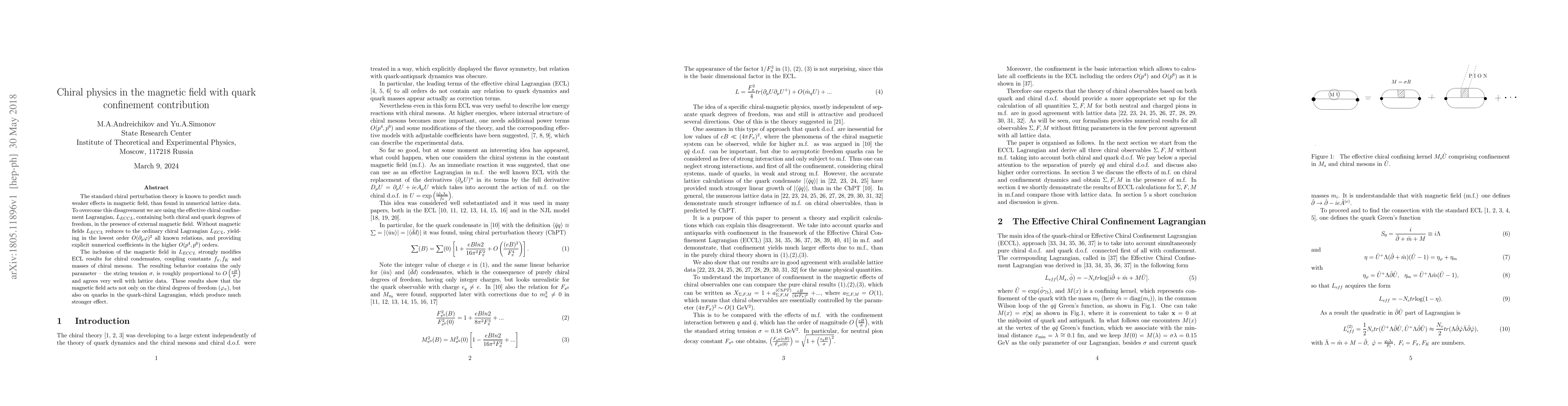 The standard chiral perturbation theory is known to predict much weaker effects in magnetic field, than found in numerical lattice data. To overcome this disagreement we are using the effective chiral confinement Lagrangian, $L_{ECCL}$, containing both chiral and quark degrees of freedom, in the presence of external magnetic field. Without magnetic fields $L_{ECCL}$ reduces to the ordinary chiral Lagrangian $L_{EC L}$, yielding in the lowest order $O(\partial_\mu \varphi)^2$ all known relations, and providing explicit numerical coefficients in the higher $O(p^4, p^6)$ orders. The inclusion of the magnetic field in $L_{ECCL}$ strongly modifies ECL results for chiral condensates, coupling constants $f_\pi, f_K$ and masses of chiral mesons. The resulting behavior contains the only parameter -- the string tension $\sigma$, is roughly proportional to $O\left( \frac{eB}{\sigma}\right)$ and agrees very well with lattice data. These results show that the magnetic field acts not only on the chiral degrees of freedom $(\varphi_\pi)$, but also on quarks in the quark-chiral Lagrangian, which produce much stronger effect.
