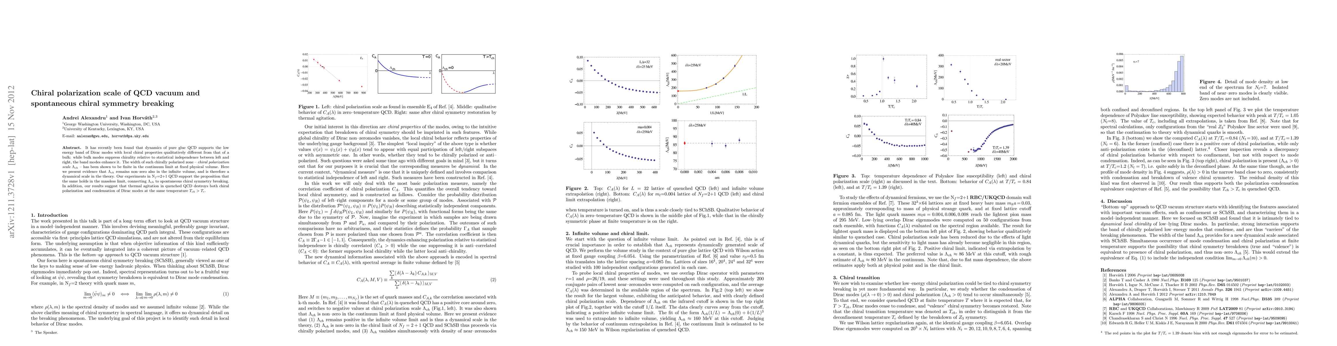 This paper investigates the chiral polarization scale Lambda_ch in QCD vacuum, demonstrating that it remains non-zero even in infinite volume, linking it to spontaneous chiral symmetry breaking. Experiments in N_f=2+1 QCD suggest thermal agitation destroys chiral polarization and Dirac mode condensation at a temperature T_ch > T_c.