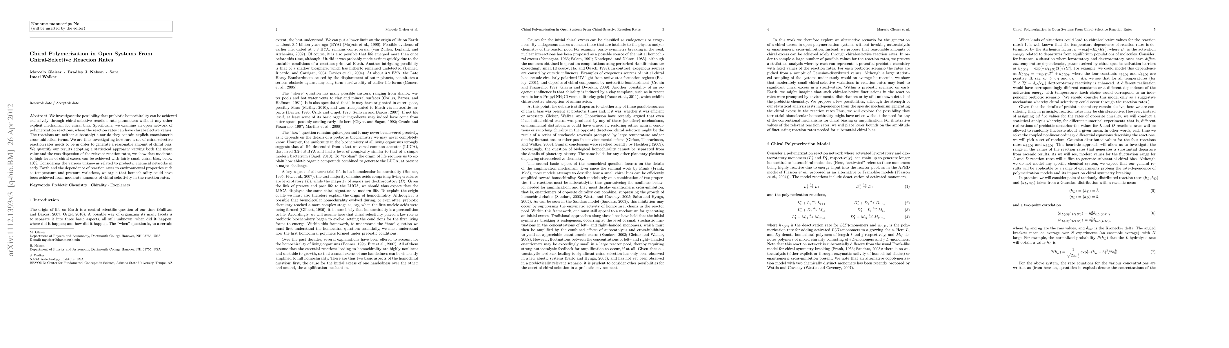 We investigate the possibility that prebiotic homochirality can be achieved exclusively through chiral-selective reaction rate parameters without any other explicit mechanism for chiral bias. Specifically, we examine an open network of polymerization reactions, where the reaction rates can have chiral-selective values. The reactions are neither autocatalytic nor do they contain explicit enantiomeric cross-inhibition terms. We are thus investigating how rare a set of chiral-selective reaction rates needs to be in order to generate a reasonable amount of chiral bias. We quantify our results adopting a statistical approach: varying both the mean value and the rms dispersion of the relevant reaction rates, we show that moderate to high levels of chiral excess can be achieved with fairly small chiral bias, below 10%. Considering the various unknowns related to prebiotic chemical networks in early Earth and the dependence of reaction rates to environmental properties such as temperature and pressure variations, we argue that homochirality could have been achieved from moderate amounts of chiral selectivity in the reaction rates.
